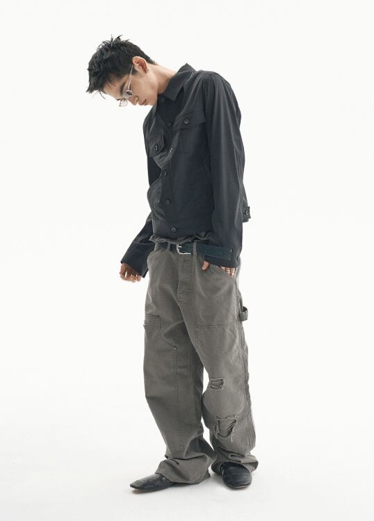 [UNDERMYCAR] ARMY CANVAS CARPENTER PANTS - KHAKI GRAY 正規品 韓国ブランド 韓国通販 韓国代行 韓国ファッション アンダーマイカー 日本 店舗
