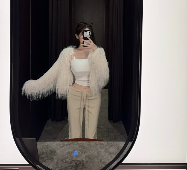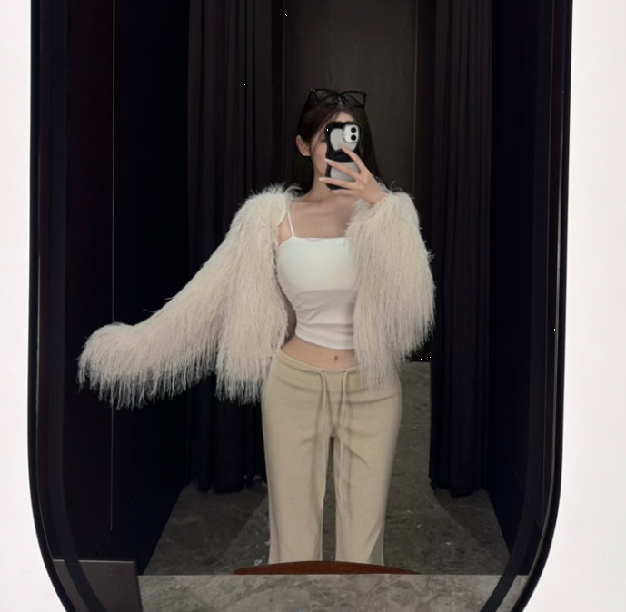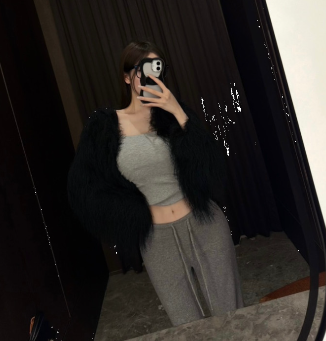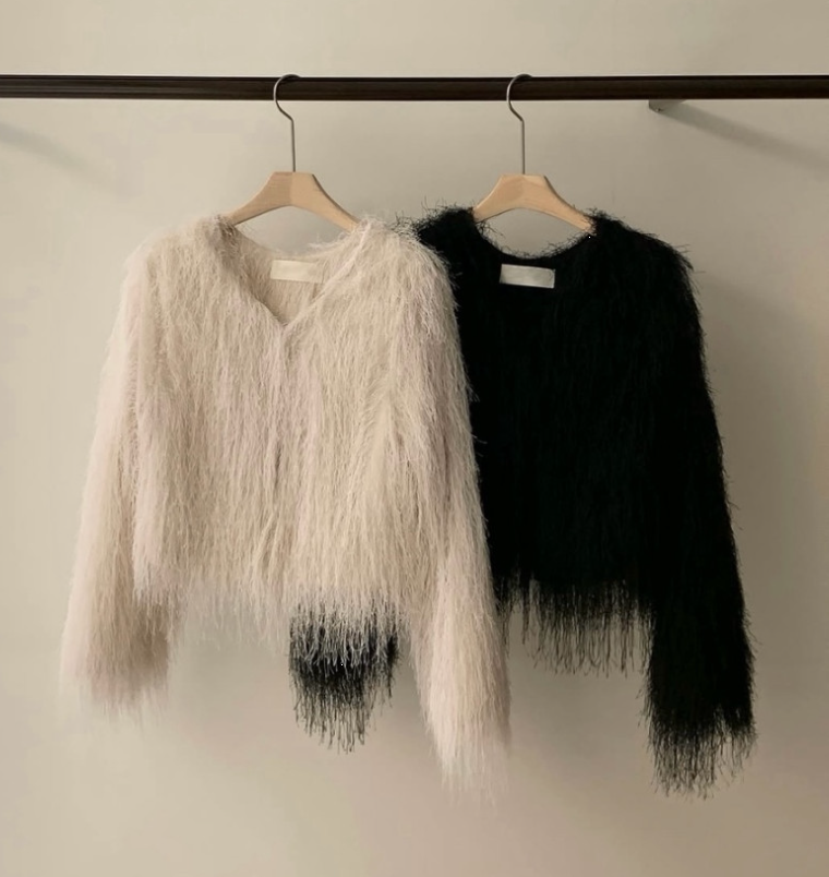 [YUZ] 클로 깃털 후크 퍼 가디건 자켓(아이, 블랙)