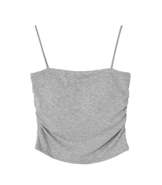 [YUZ] 유즈픽 쫀쫀 패드 셔링 나시 탑(숏 아이, 숏 그레이)