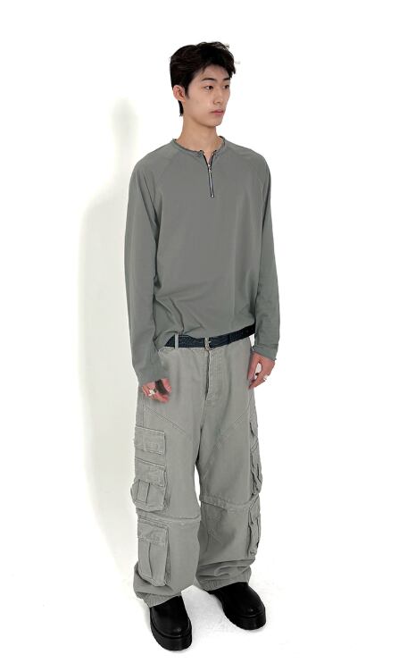 [UNDERMYCAR] Faded Core Zip Long Sleeve Ash Gray