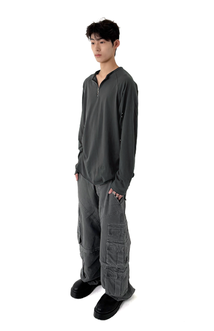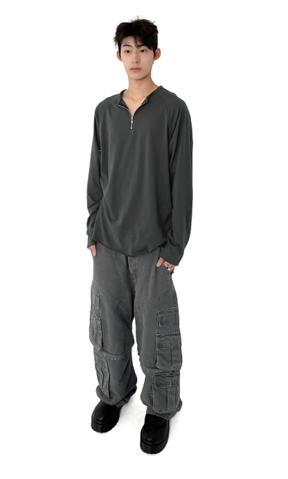 [UNDERMYCAR] Faded Core Zip Long Sleeve Charcoal
