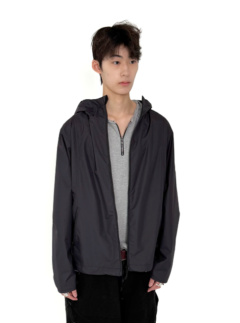[UNDERMYCAR] Faded Core Zip Half Sleeve Melange Gray