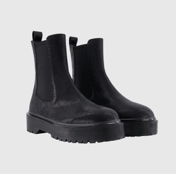 [UNDERMYCAR] BOLD LIZARD EMBOSSED CHELSEA BOOTS - BLACK