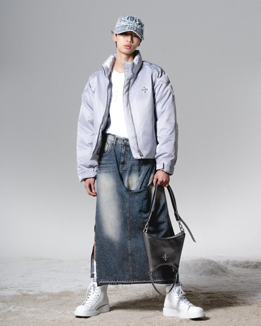 [SURGERY] surgery in&out long skirt 'grey blue' 正規品 韓国ブランド 韓国通販 韓国代行 韓国ファッション sur8ery サージェリー 取扱店 日本 店舗