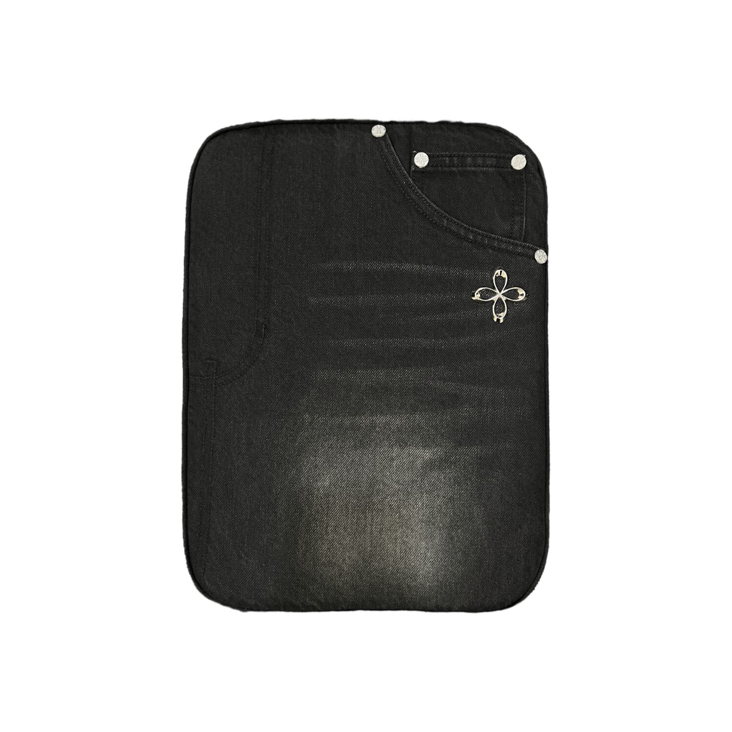 [SURGERY] surgery denim jeans clover logo clutch bag 'black denim'