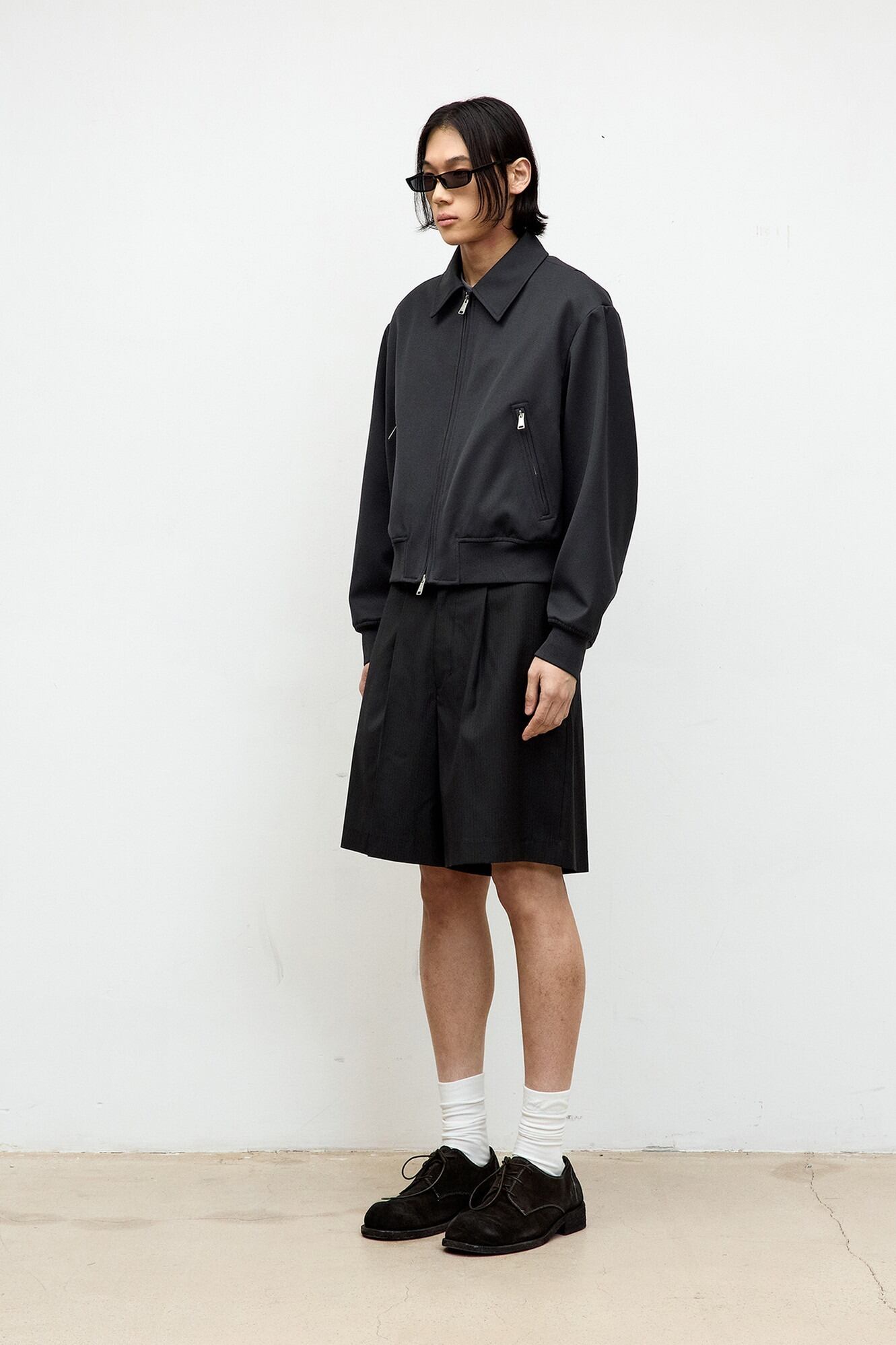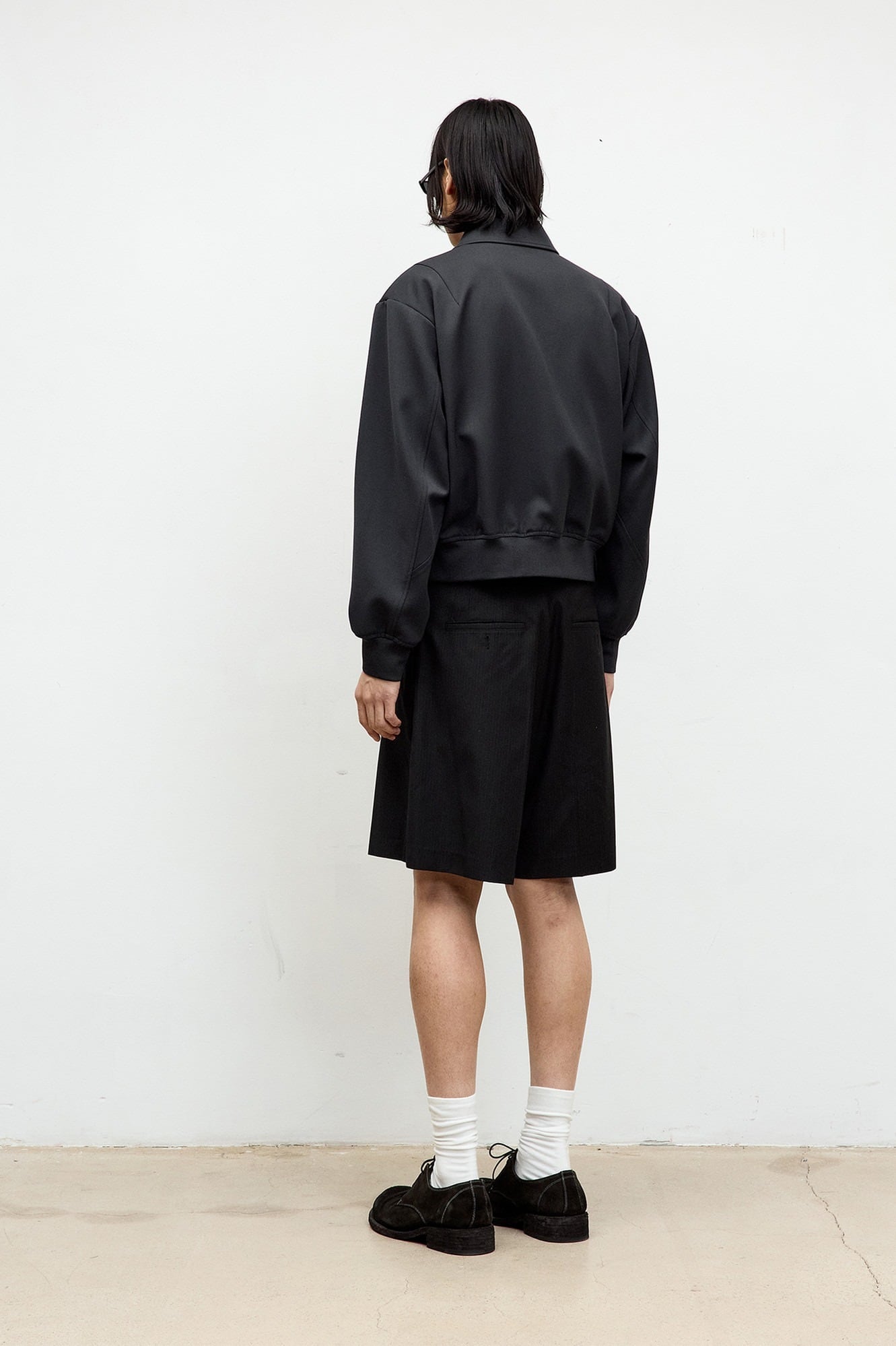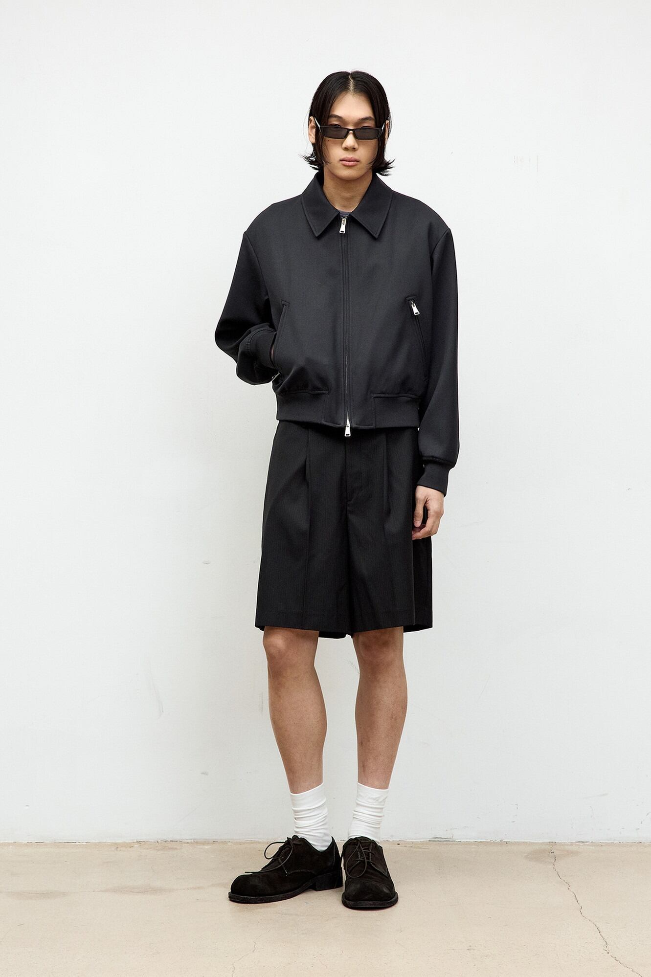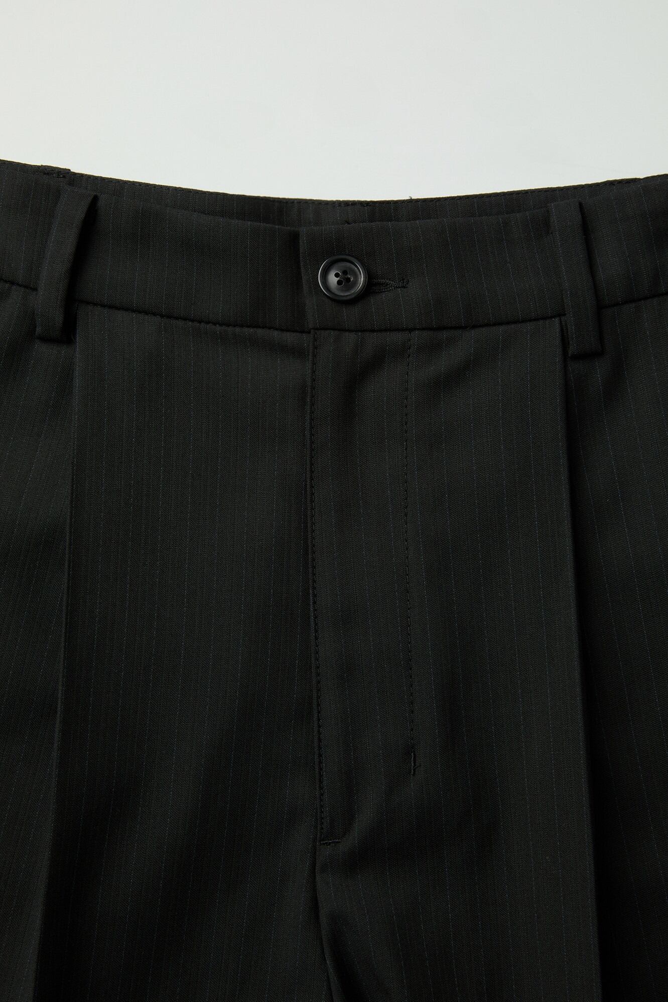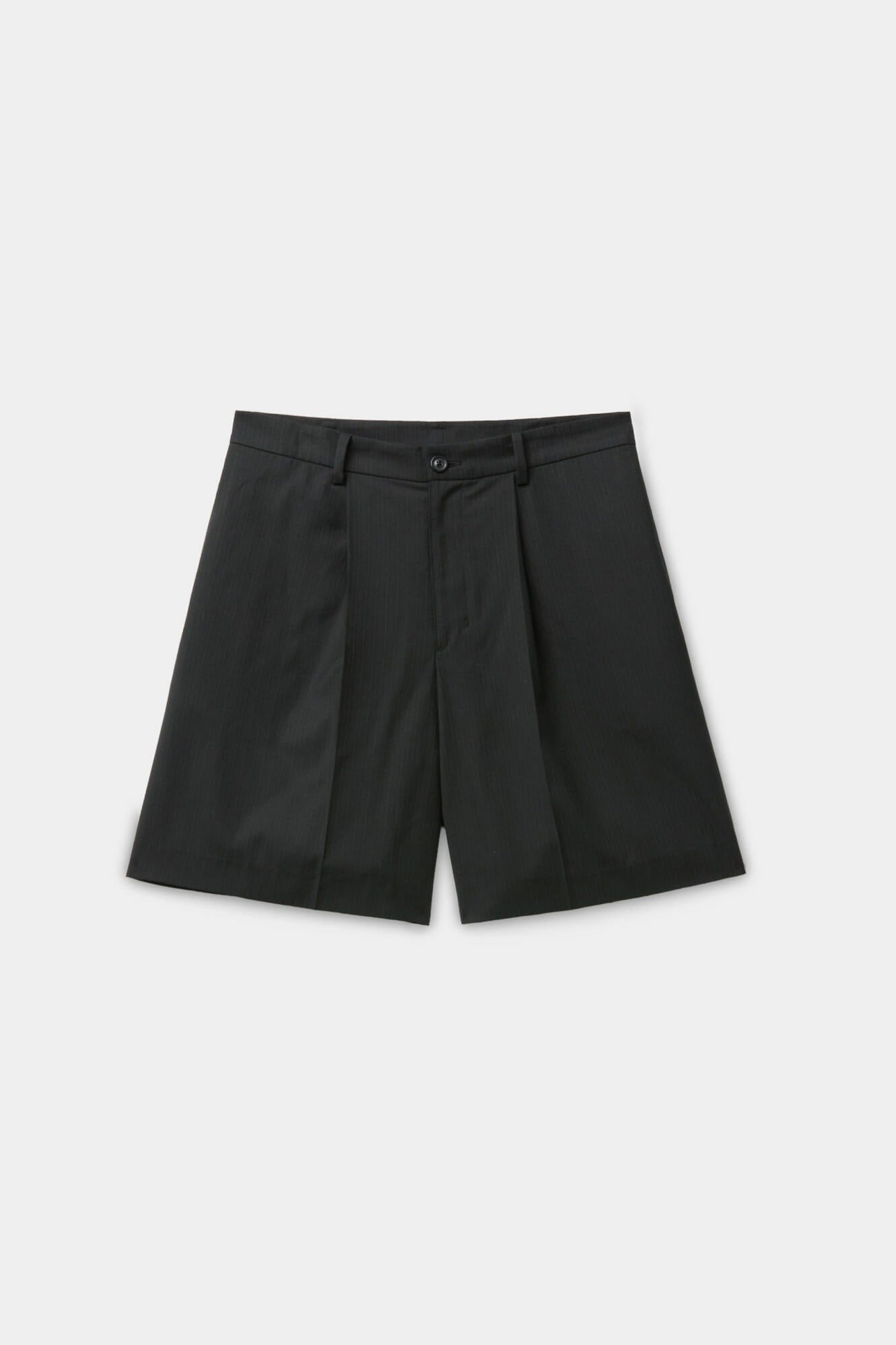 [COOR] Virgin Wool Pleated Striped Shorts (Black)