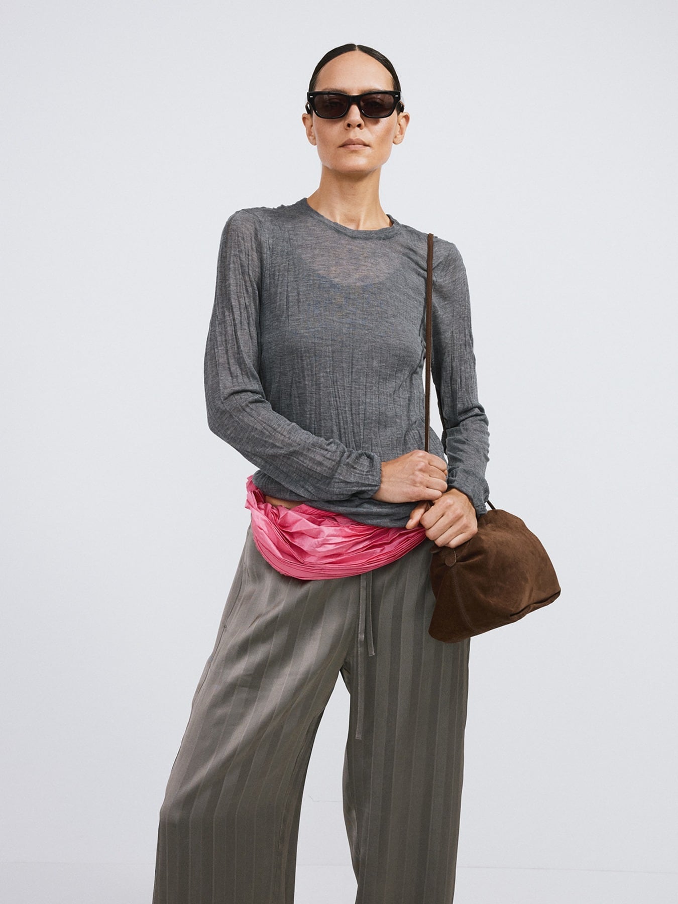 [RECTO] CREASE LONG KNIT TOP (COOL GREY)
