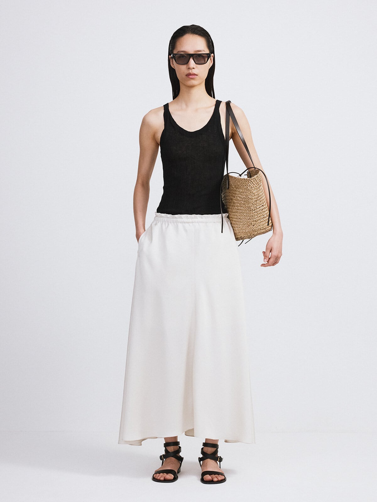 [RECTO] CREASE KNIT TANK TOP (BLACK)