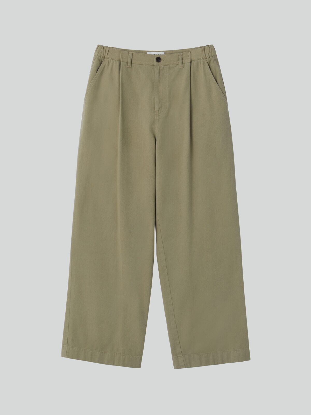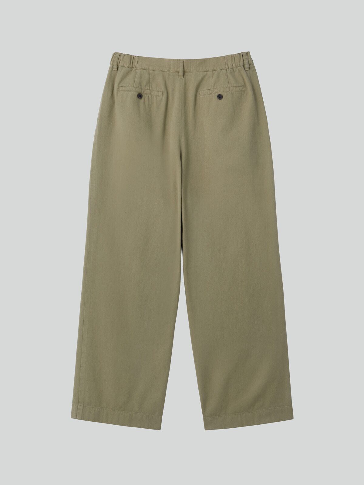 [RECTO] BANDING DETAIL WIDE COTTON PANTS (LIGHT KHAKI)