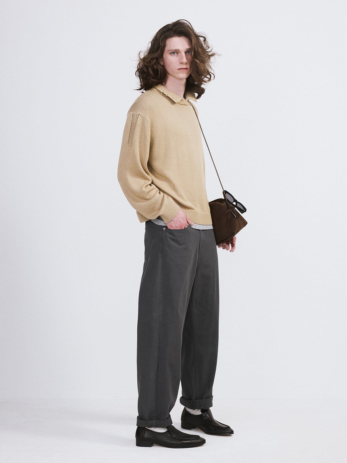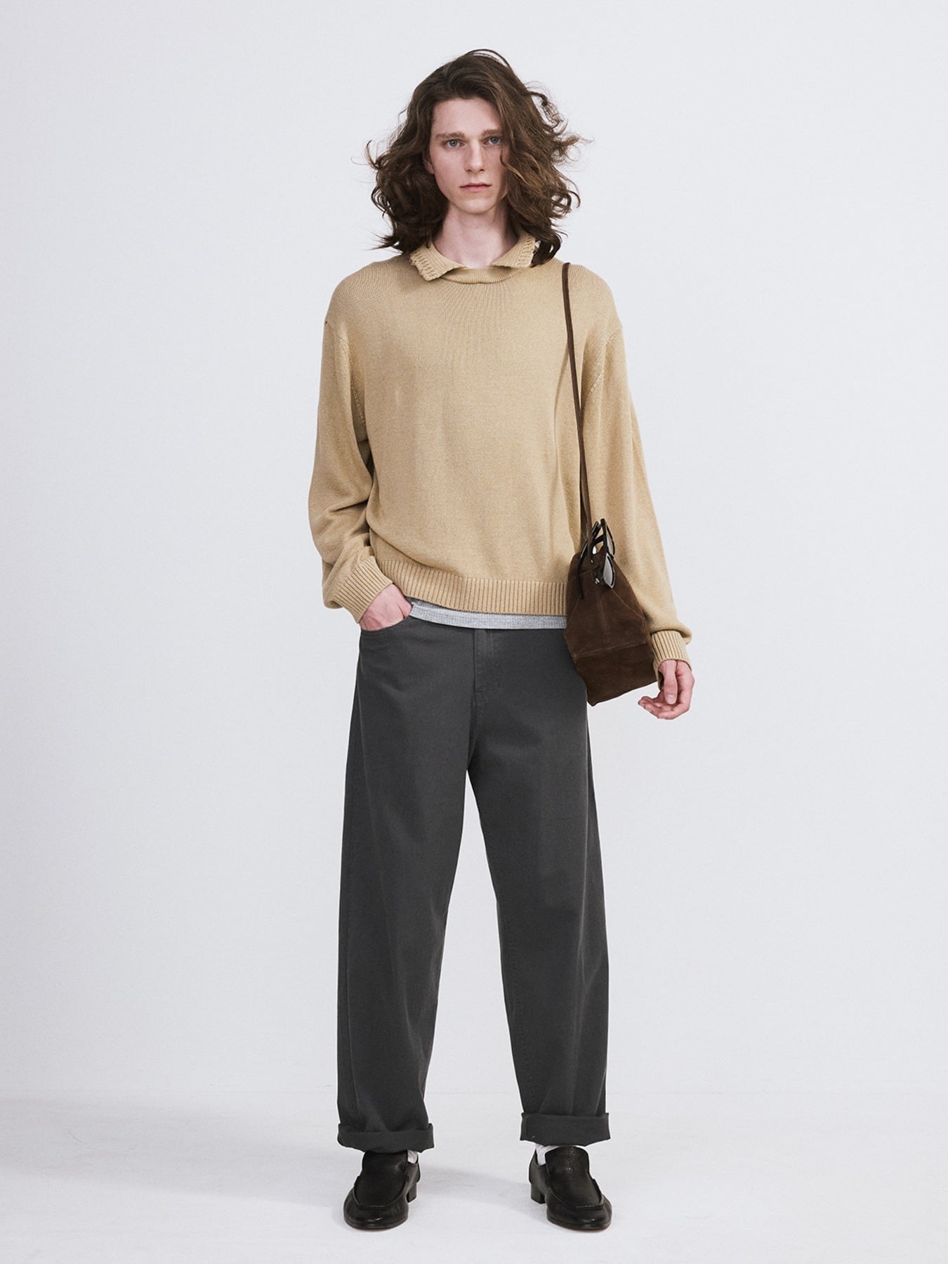 [RECTO] WAFFLE COLLAR KNIT TOP (BEIGE KHAKI)