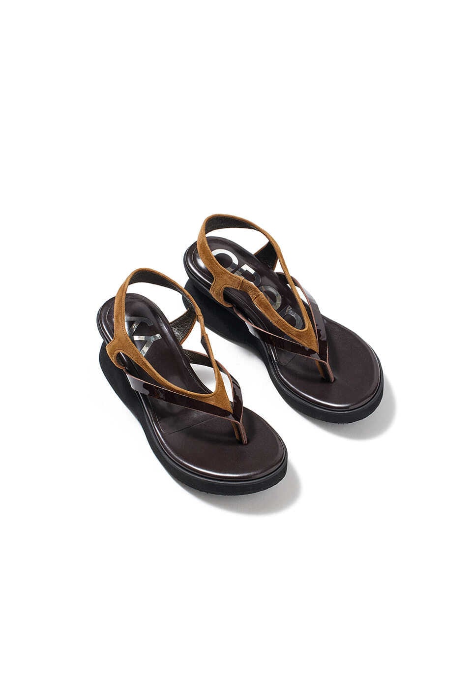 [OPEN YY] DOUBLE STRAP PLATFORM FLIP FLOPS, BROWN 正規品 韓国ブランド 韓国通販 韓国代行 韓国ファッション オープン ワイワイ 日本 店舗