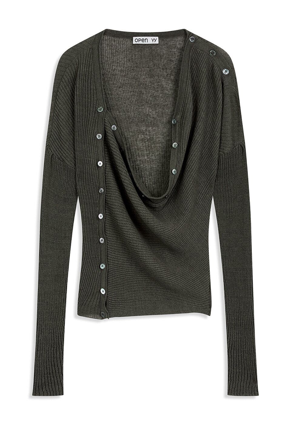 [OPEN YY] CONVERTIBLE DRAPE CARDIGAN, DARK OLIVE 正規品 韓国ブランド 韓国通販 韓国代行 韓国ファッション オープン ワイワイ 日本 店舗