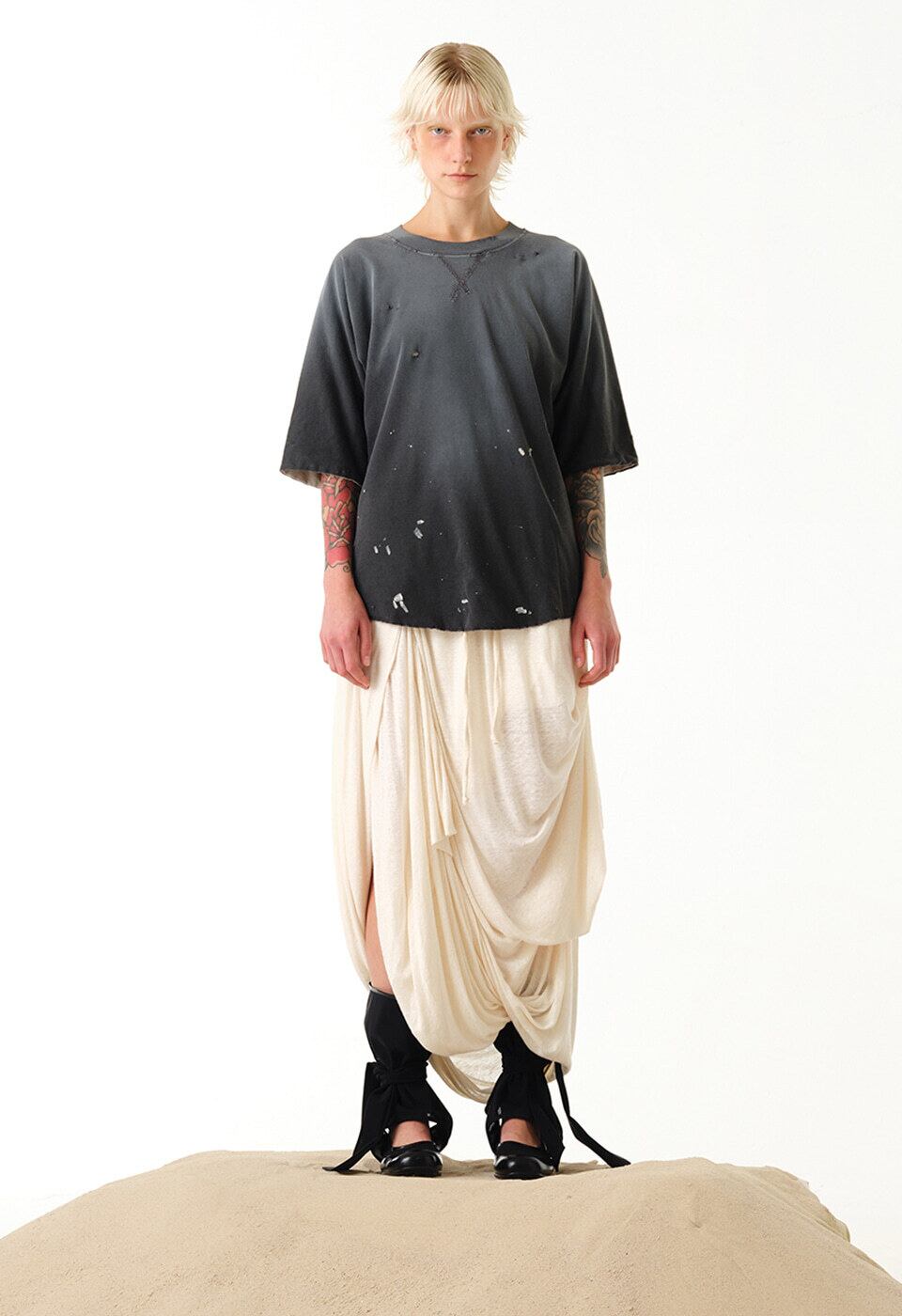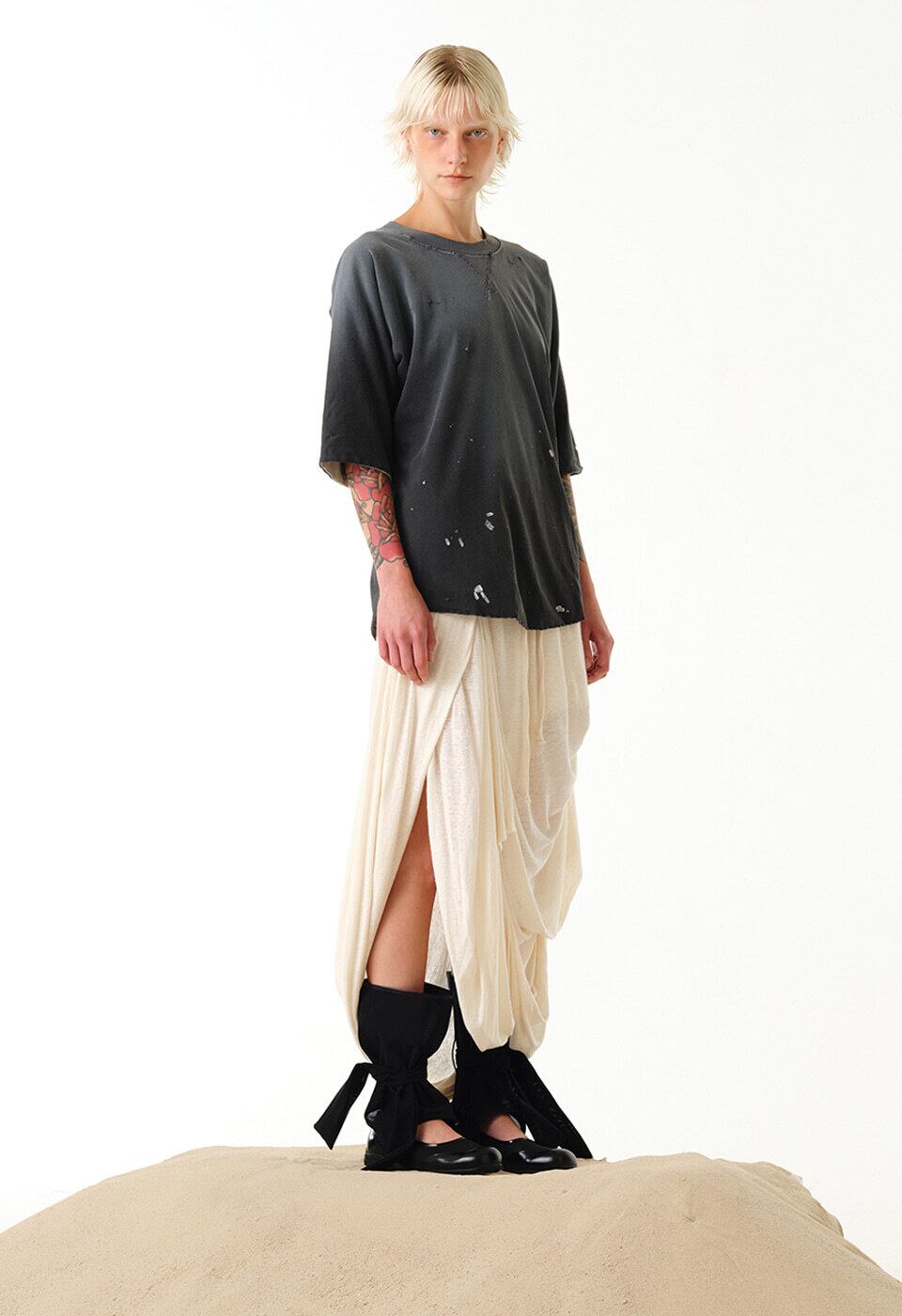 [OPEN YY] DRAPED LINEN SKIRT, CREAM