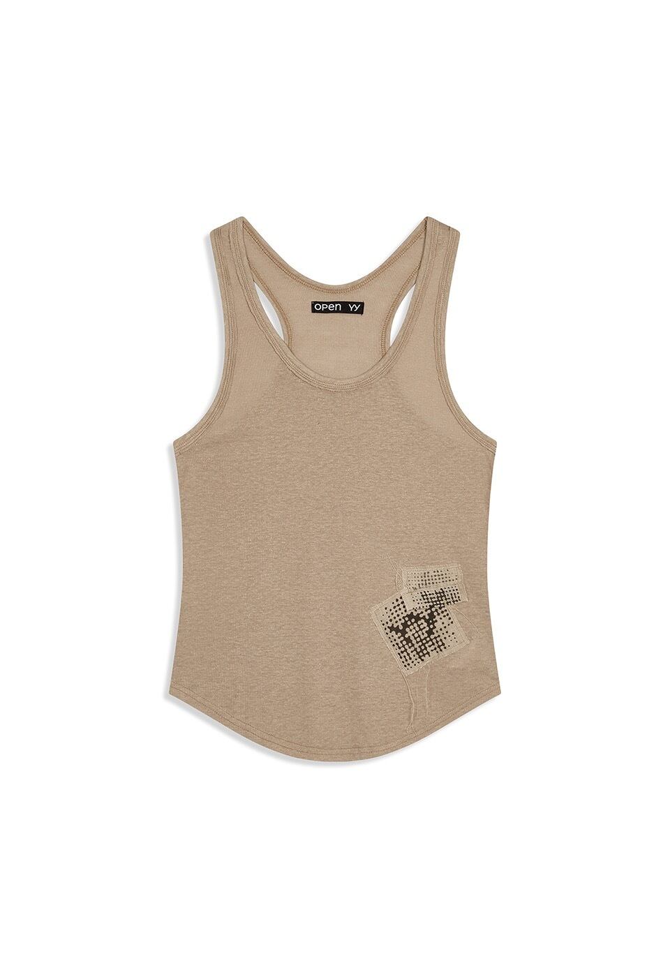 [OPEN YY] YY PATCH LOUNGE SLEEVELESS, BEIGE