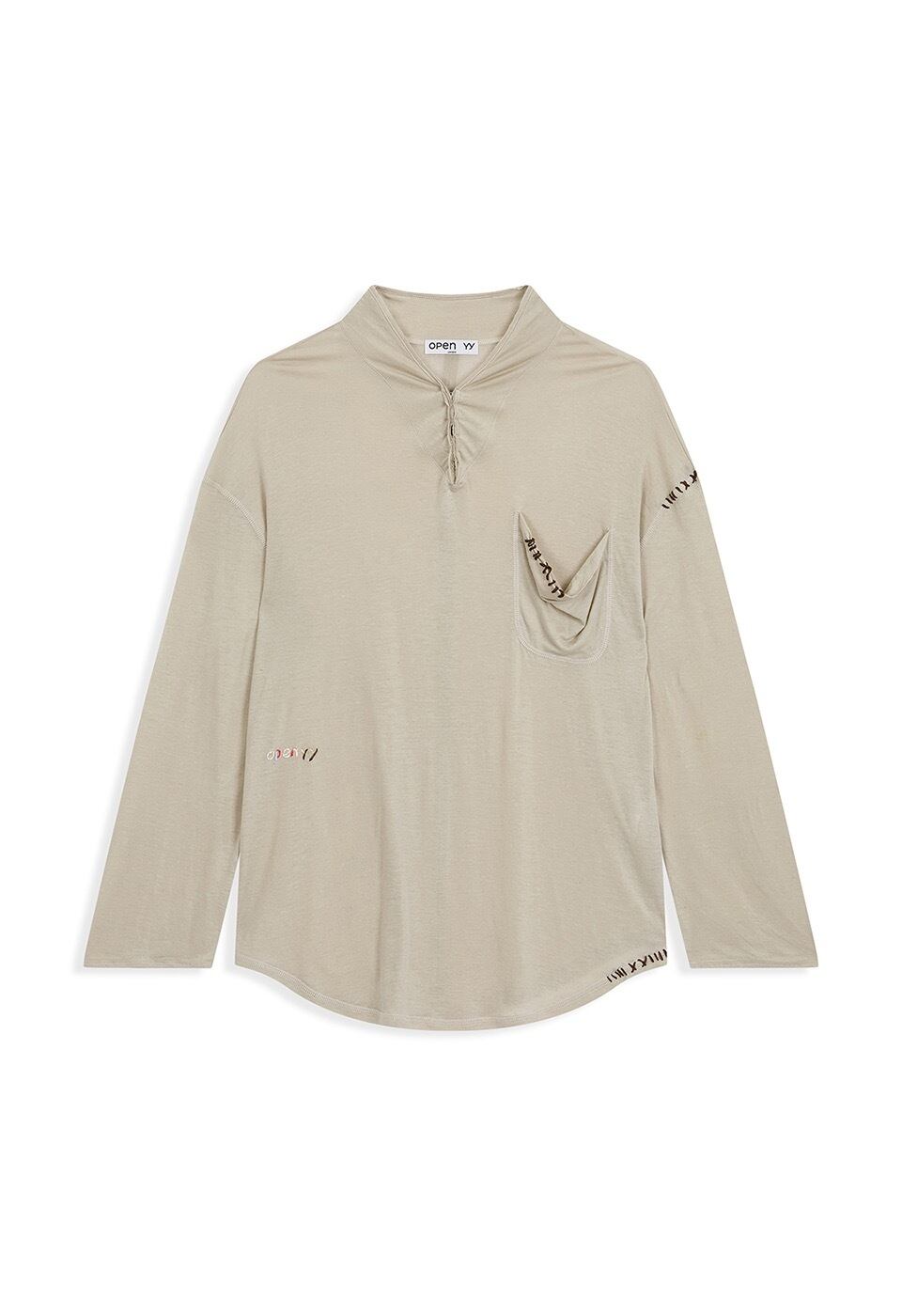 [OPEN YY] HOOK HENLEY STITCH TOP, BEIGE