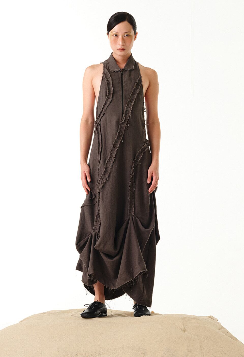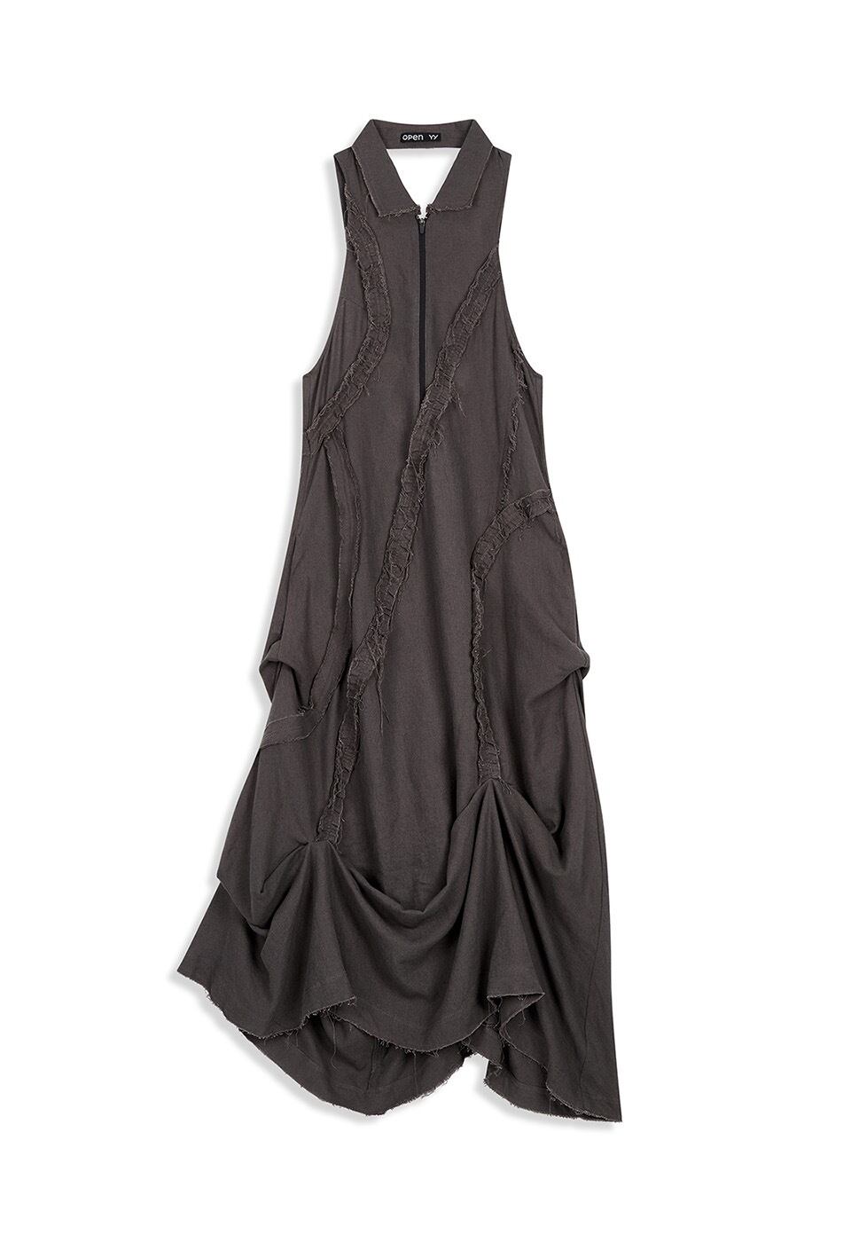 [OPEN YY] RUFFLE LINEN MAXI DRESS, CHARCOAL 正規品 韓国ブランド 韓国通販 韓国代行 韓国ファッション オープン ワイワイ 日本 店舗