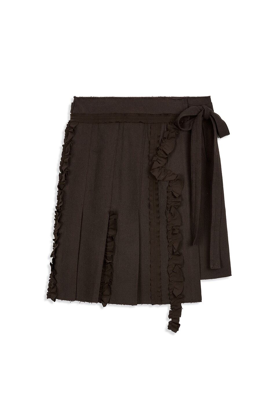 [OPEN YY] PLEATED LINEN WRAP SKIRT, BURGUNDY