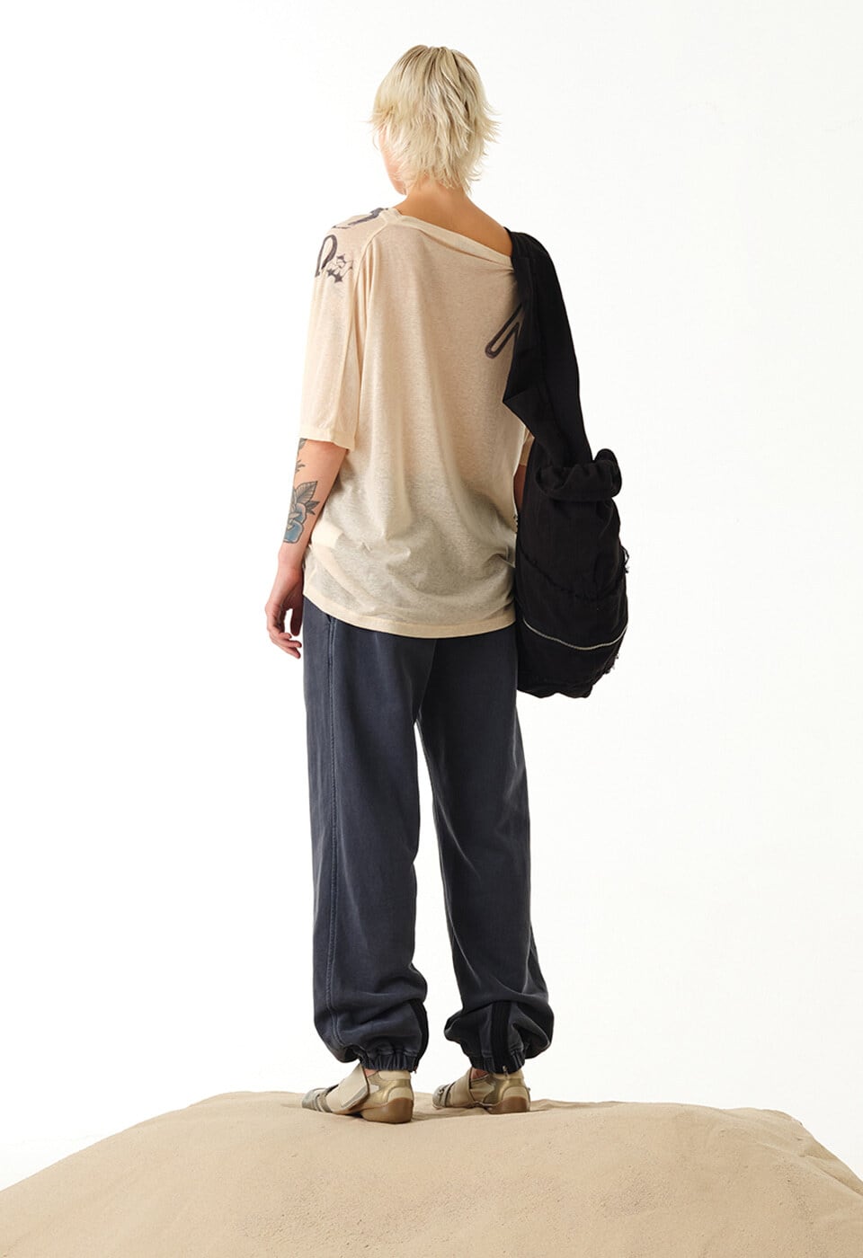 [OPEN YY] CURVED ZIP SWEAT PANTS, MIDNIGHT BLUE