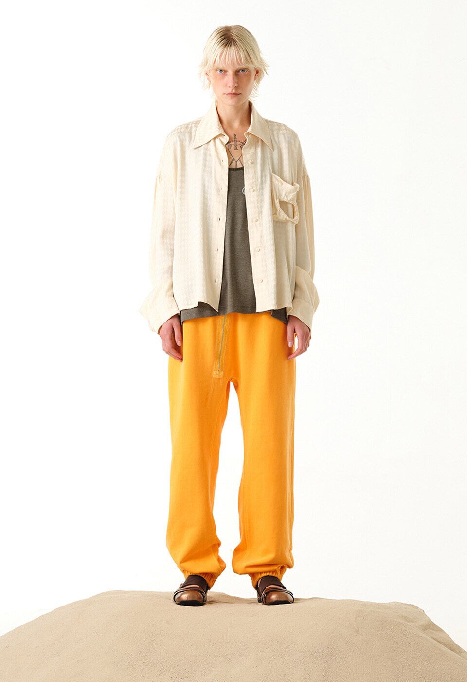 [OPEN YY] CURVED ZIP SWEAT PANTS, ORANGE
