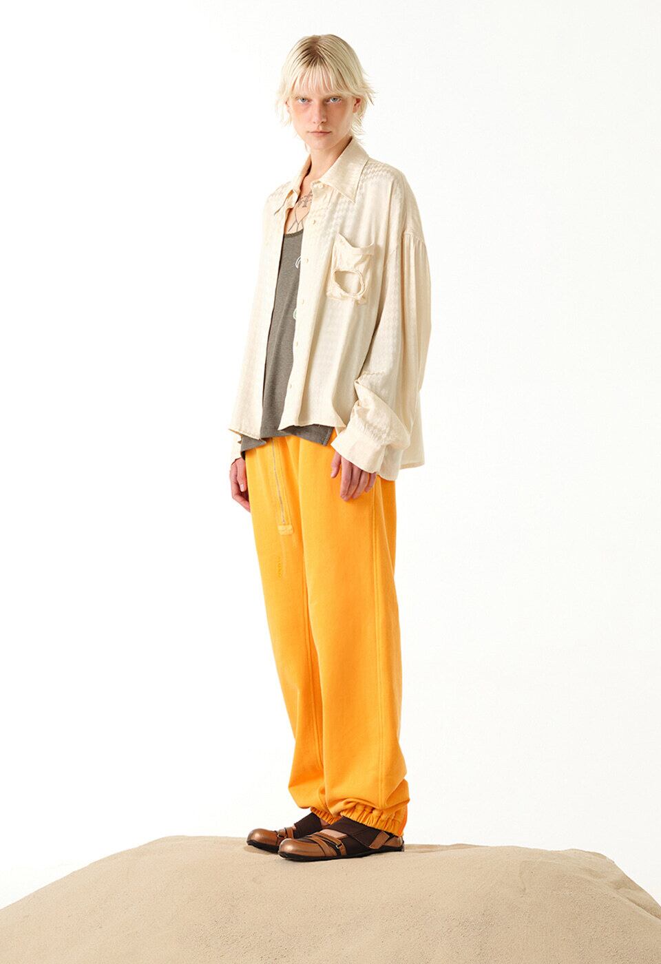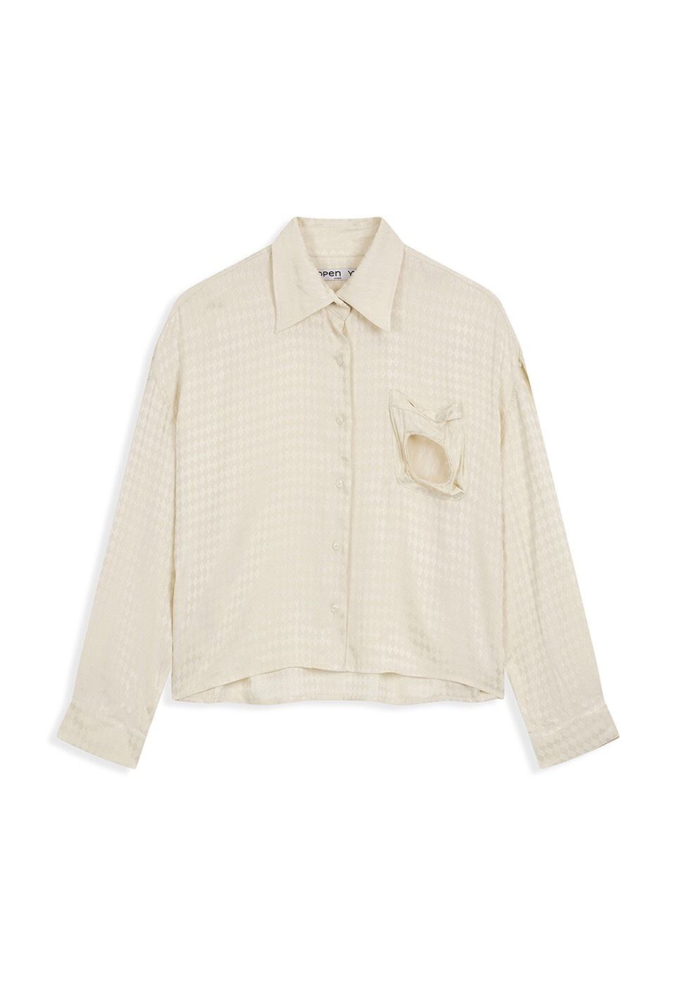 [OPEN YY] CHECKERED BEAD POCKET CROP SHIRT, IVORY