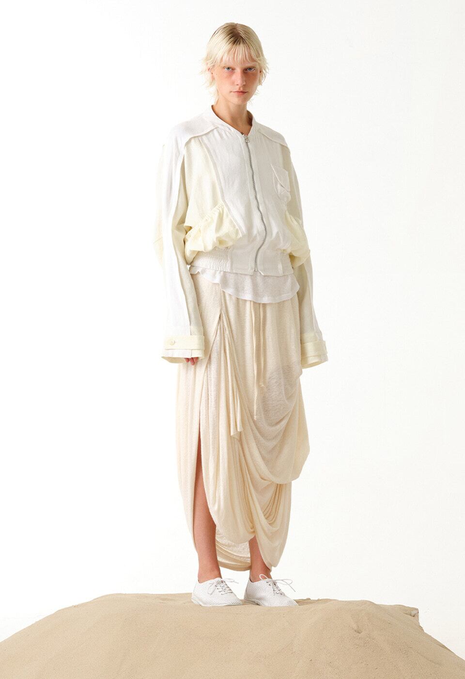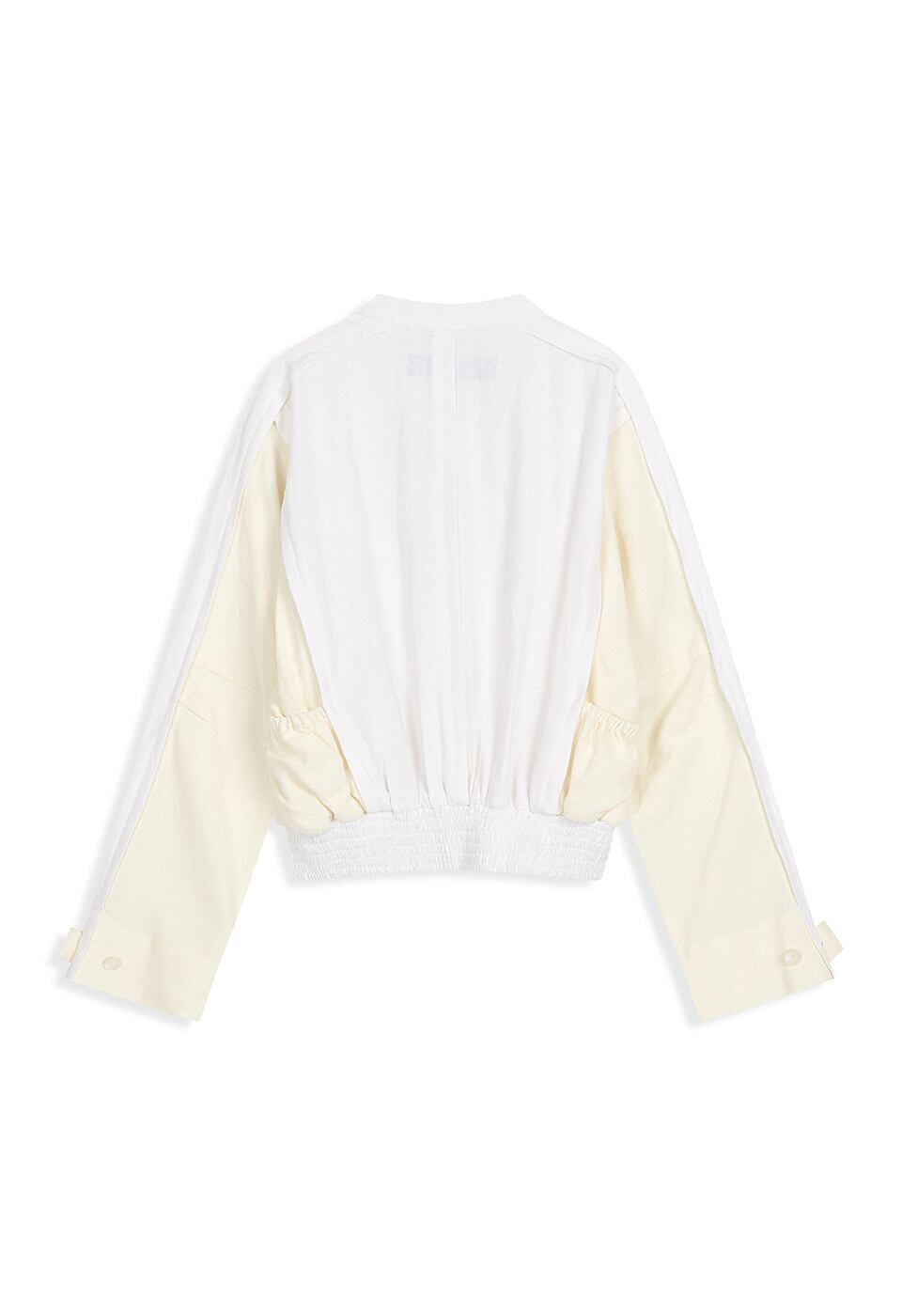 [OPEN YY] LINEN PANELED BOMBER, WHITE