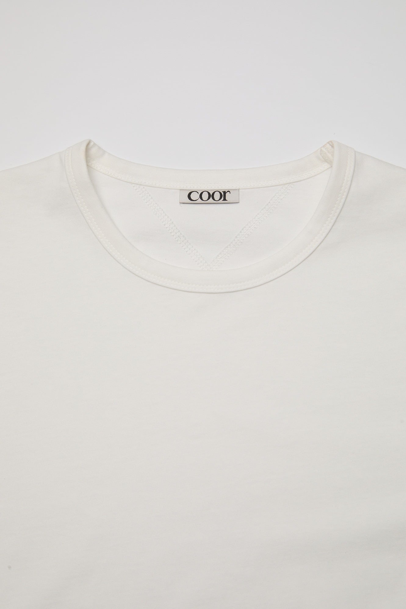 [COOR] Chain Stitch Pointed Crop T-Shirt (Off White) 正規品 韓国ブランド 韓国通販 韓国代行 韓国ファッション クール クーア クアー 日本 店舗
