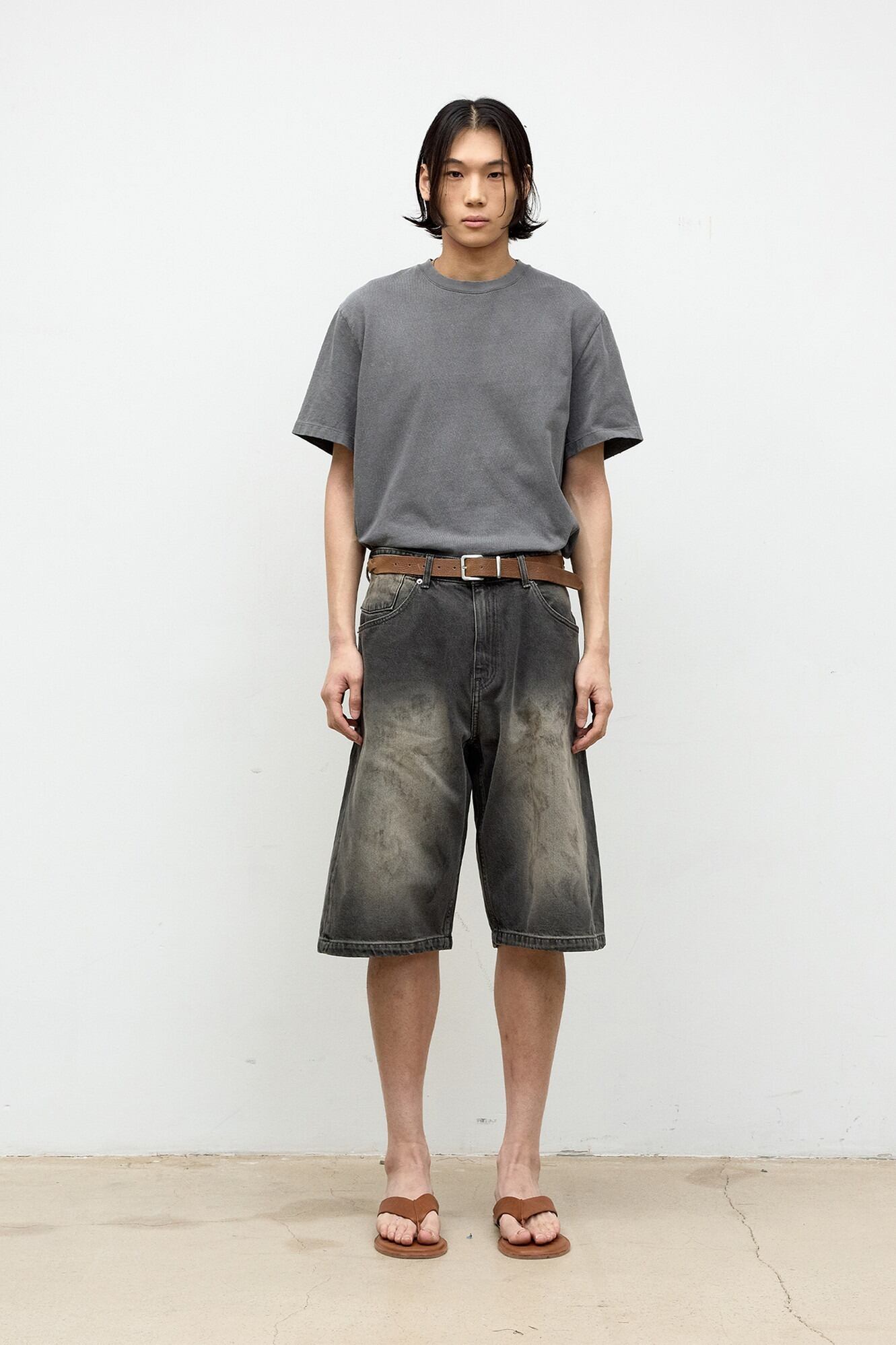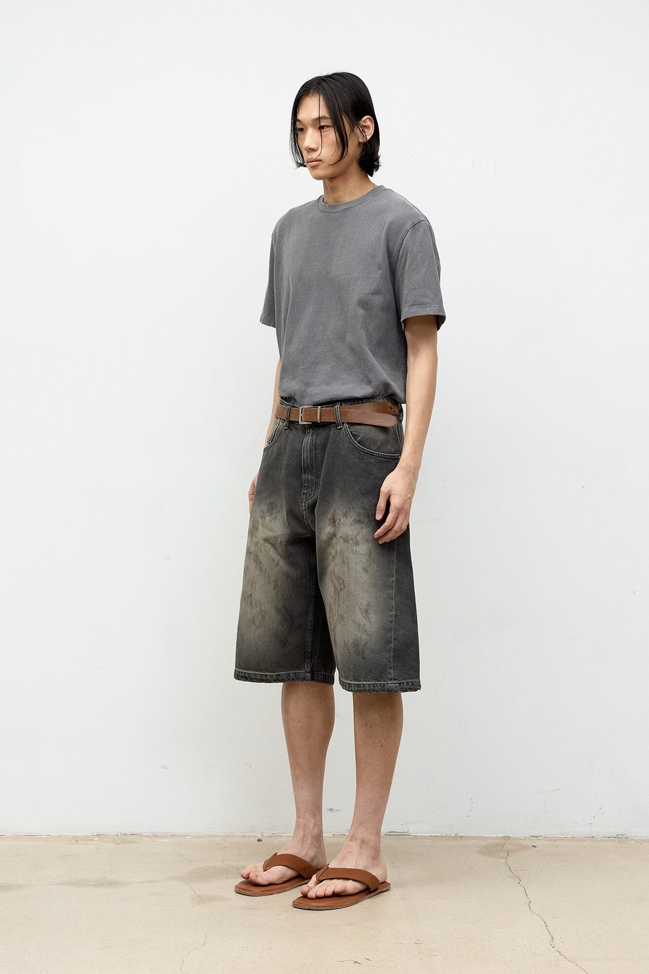 [COOR] Painted Washed Bermuda Jeans (Washed Charcoal)