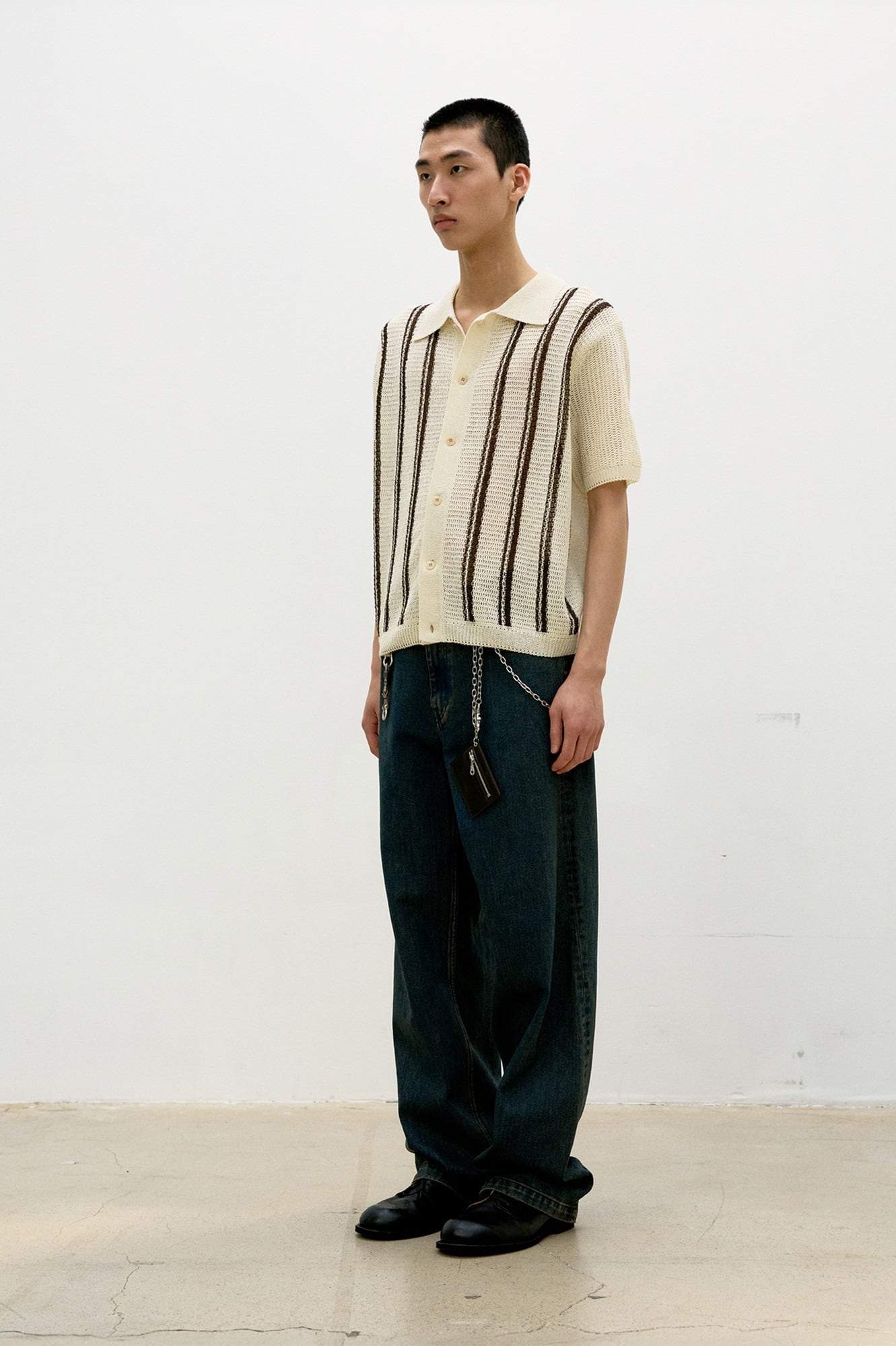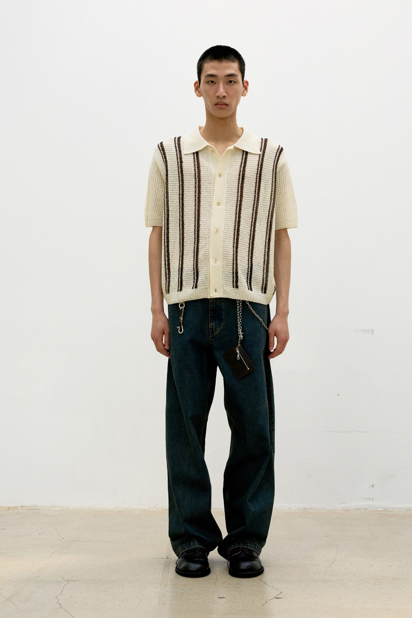 [COOR] Double Pinstripe Half Cardigan (Ivory)