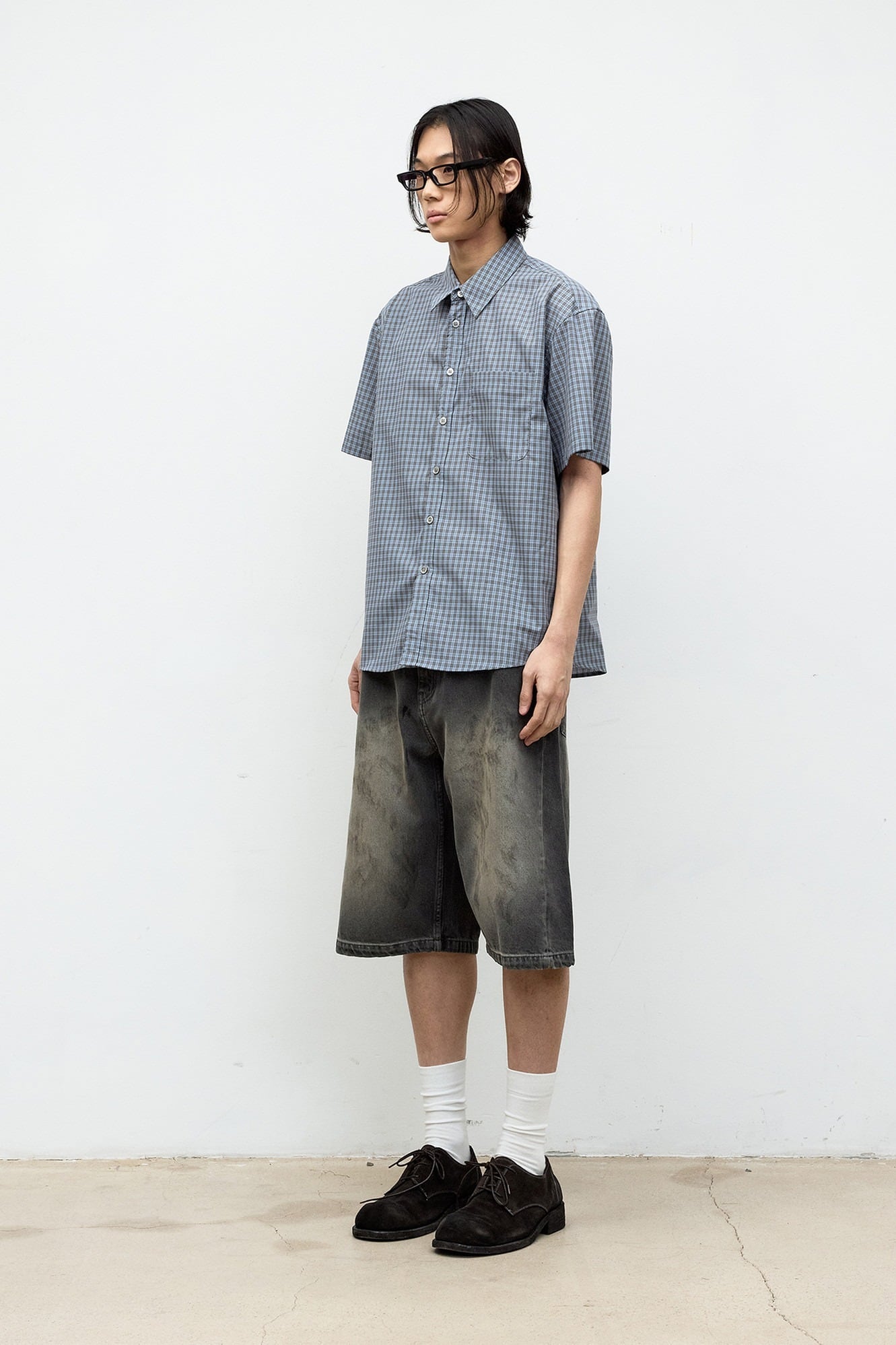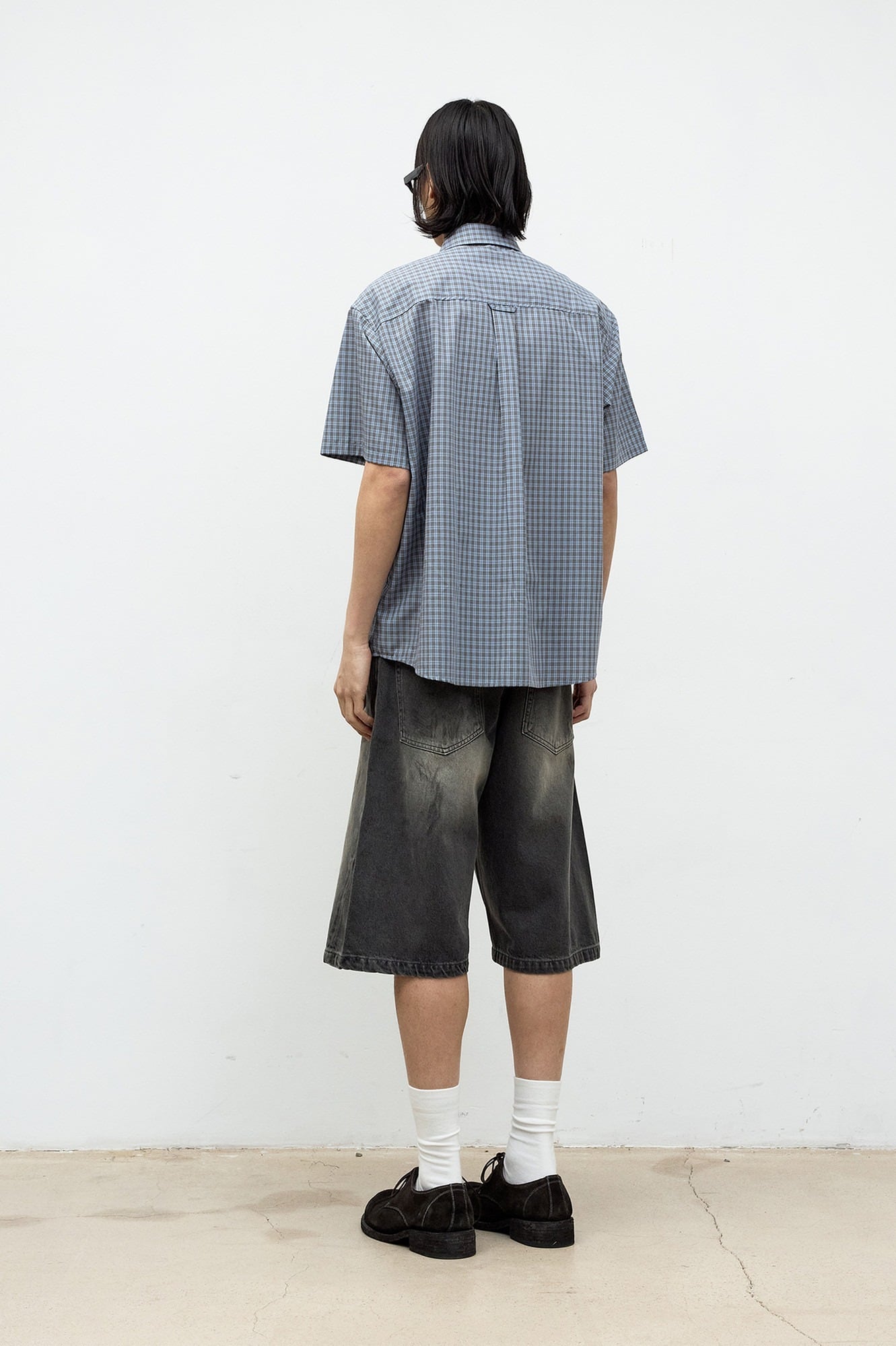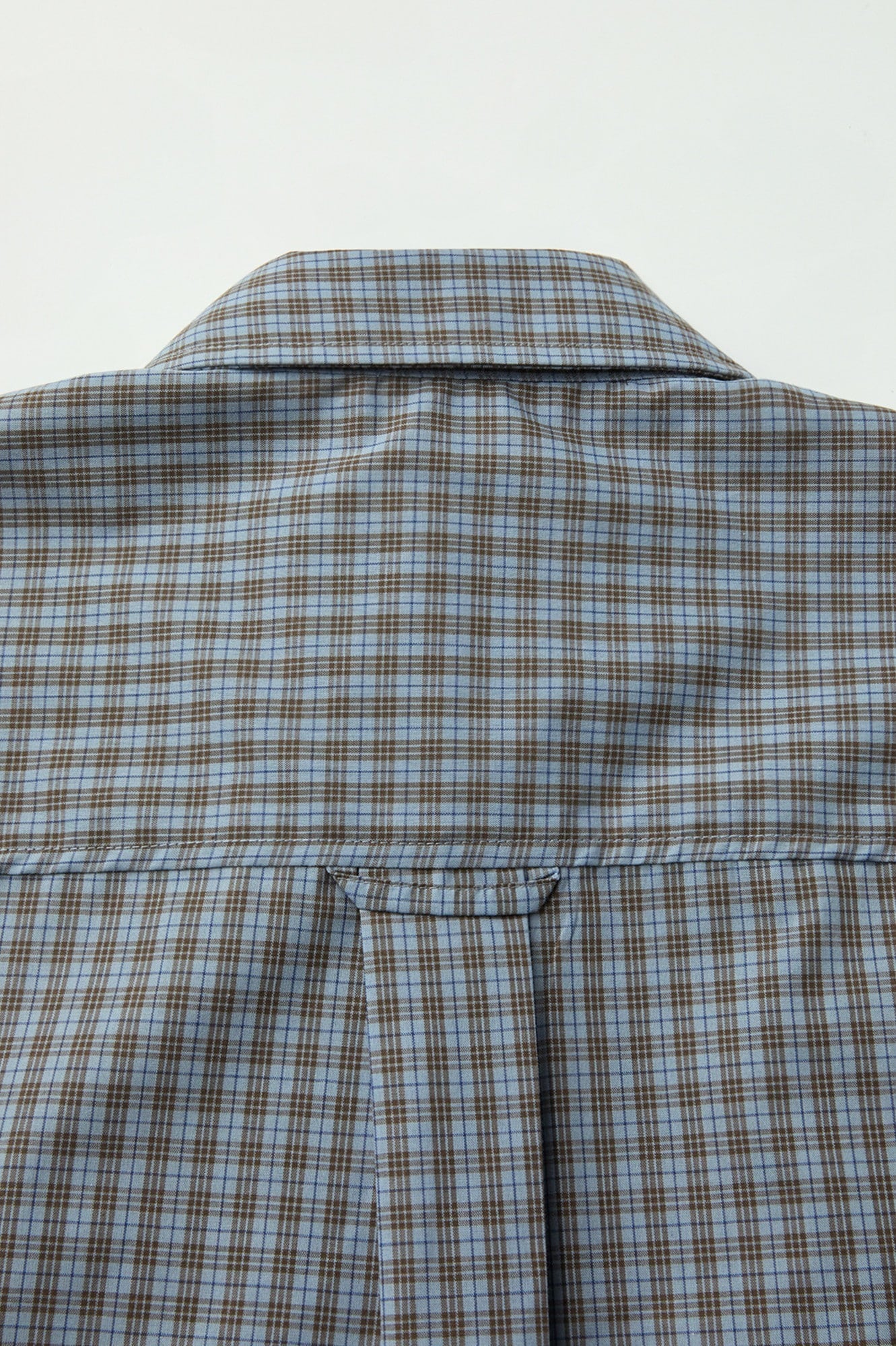 [COOR] Cotton Blend Tartan Check Half Shirt (Blue Check)