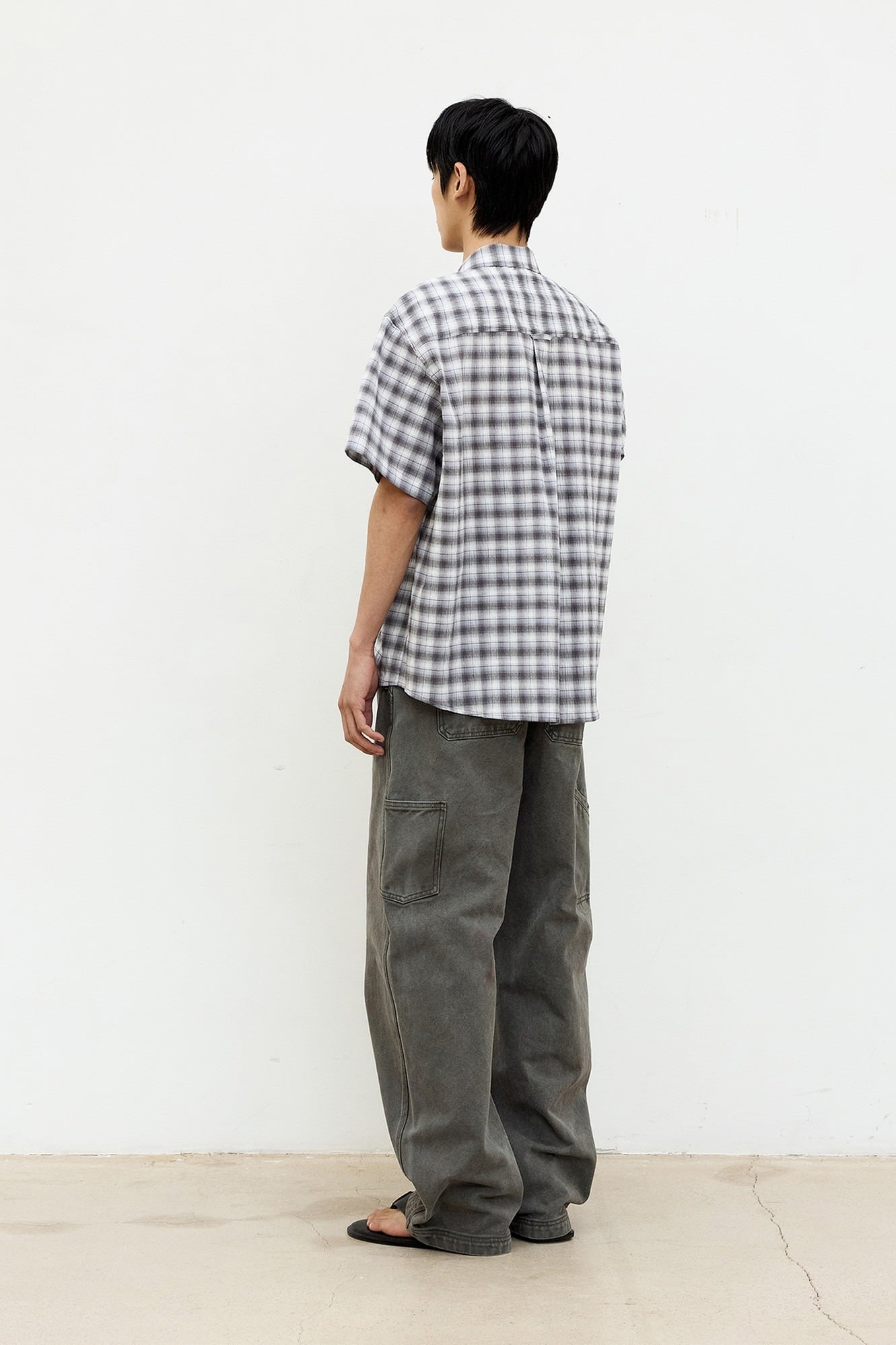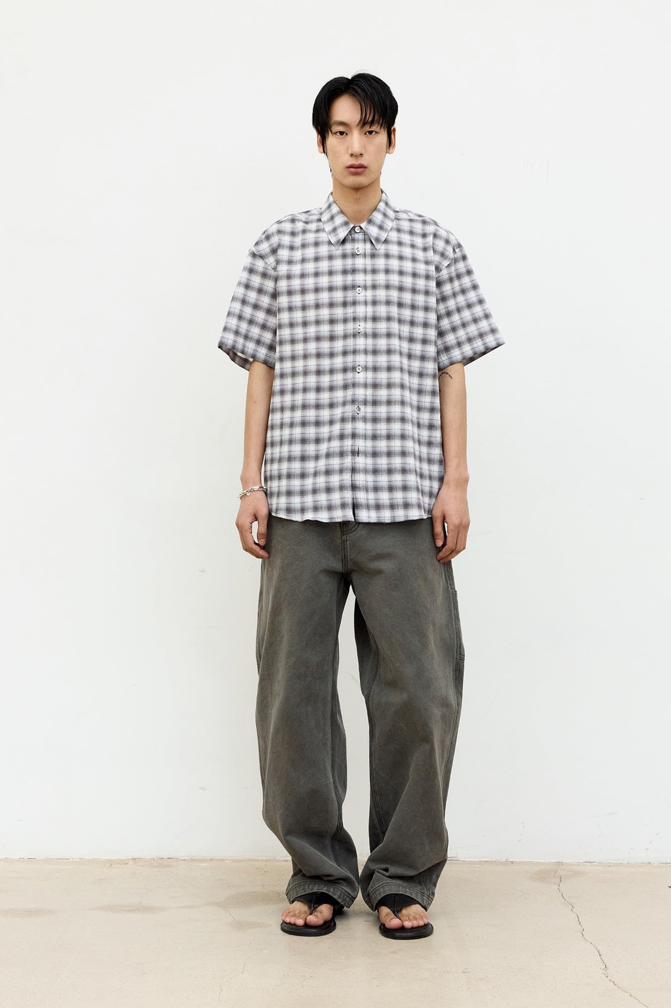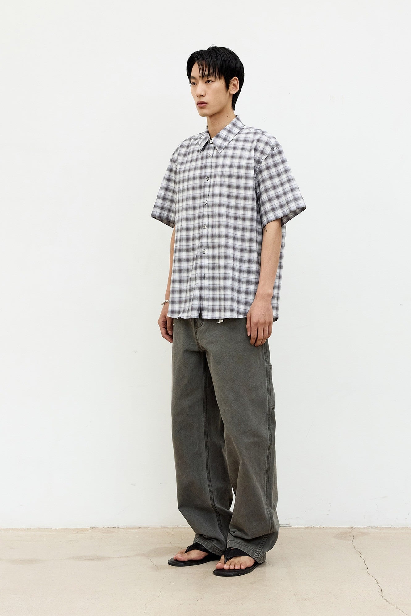 [COOR] Ombre Crease Check Half Shirt (Light Blue)