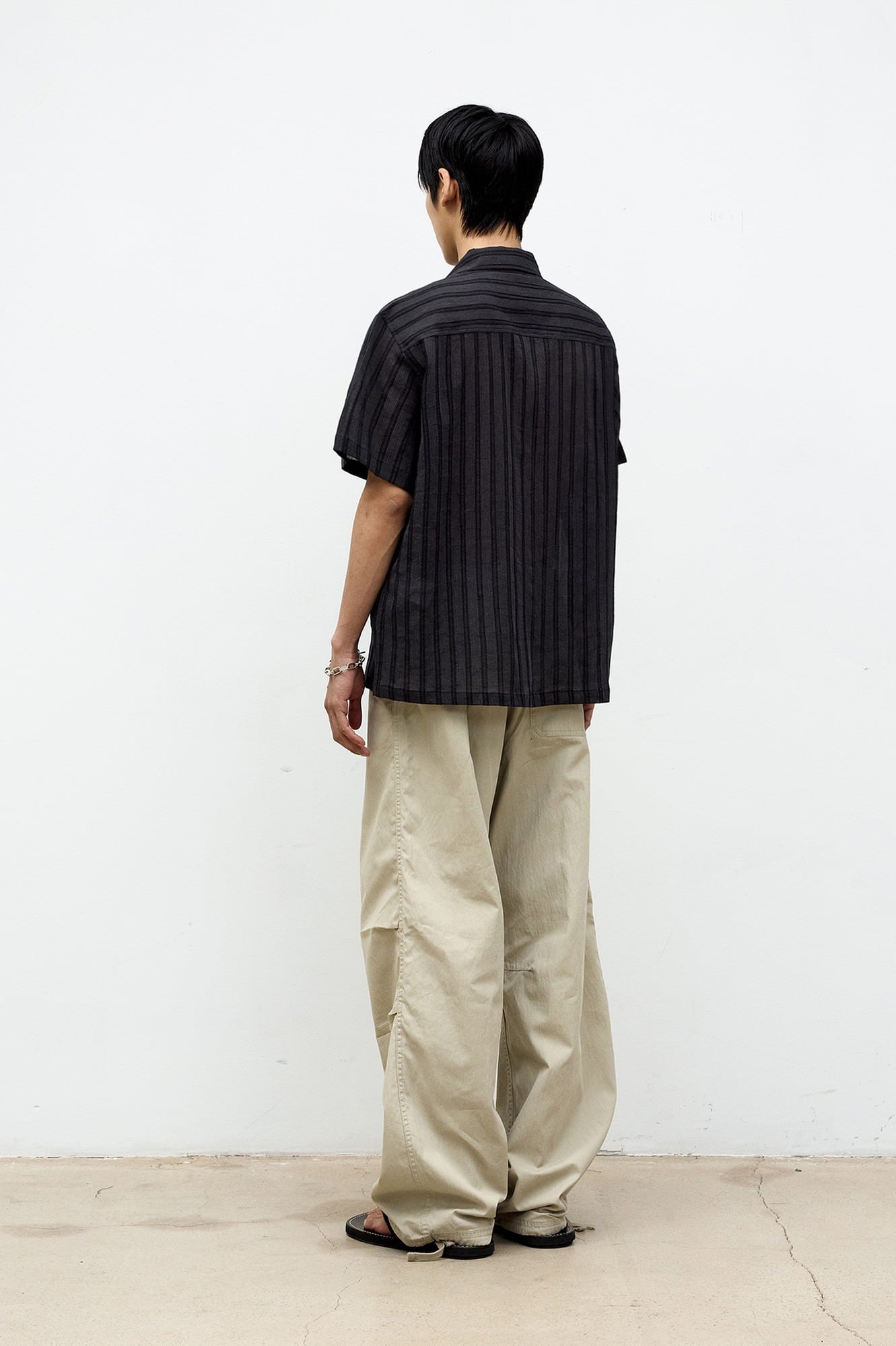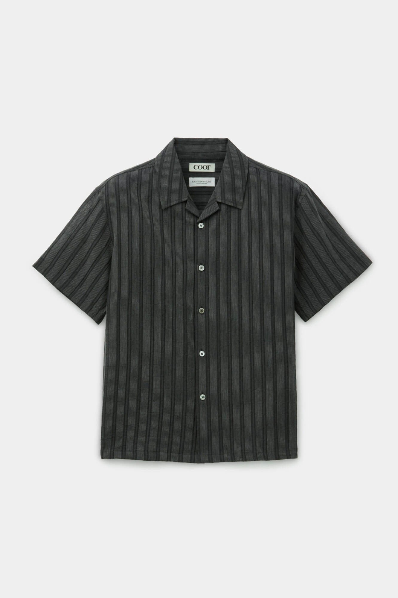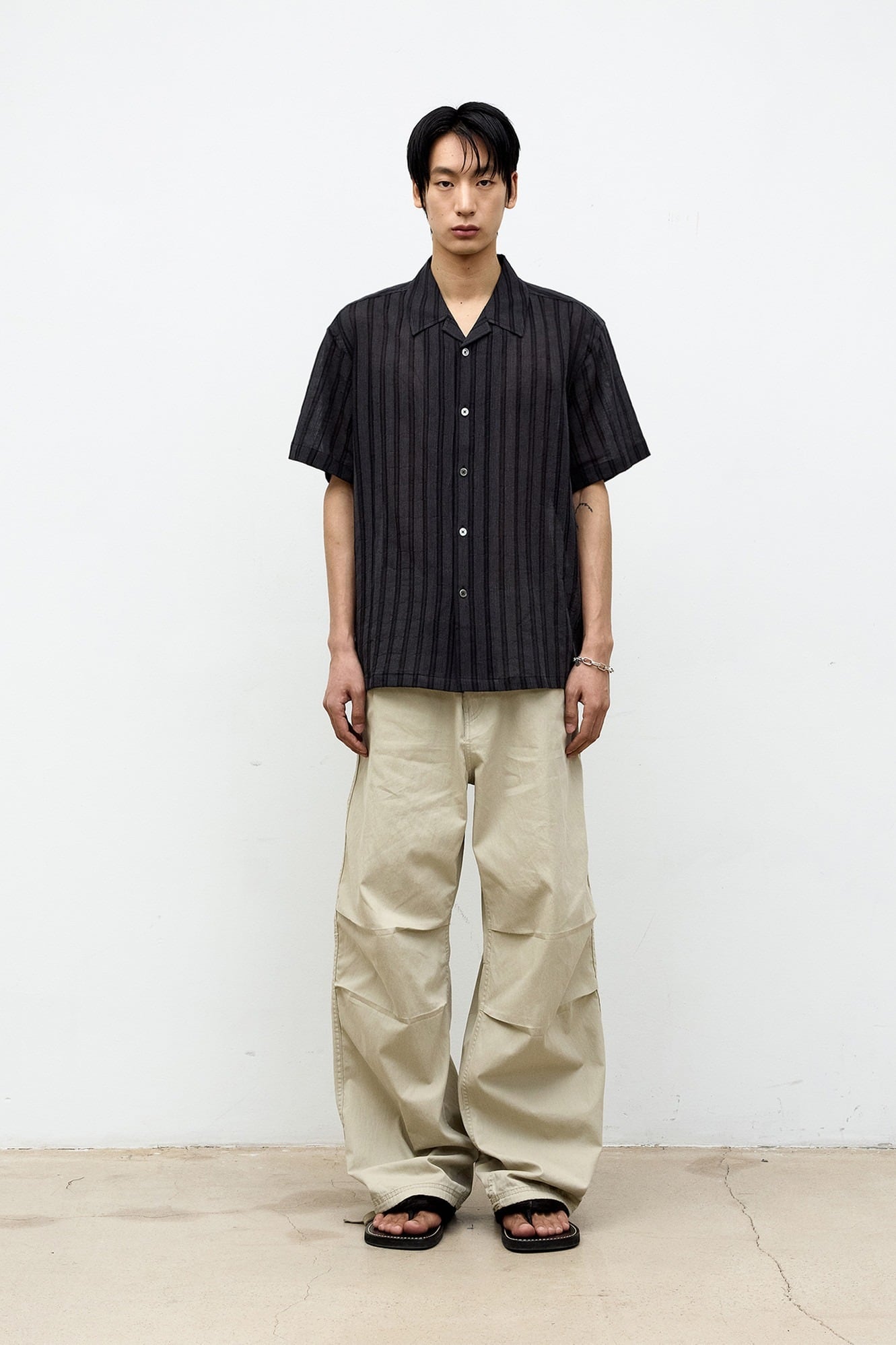 [COOR] Sheer Pin Open Collar Half Shirt (Black)