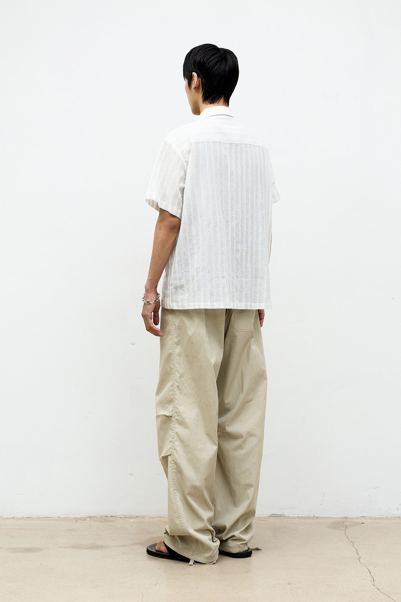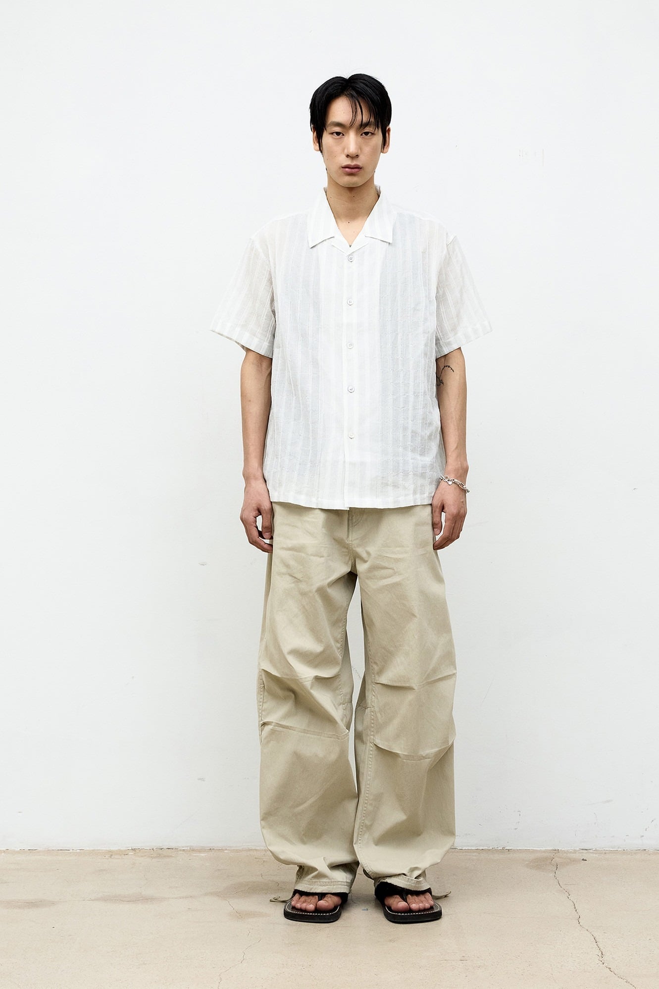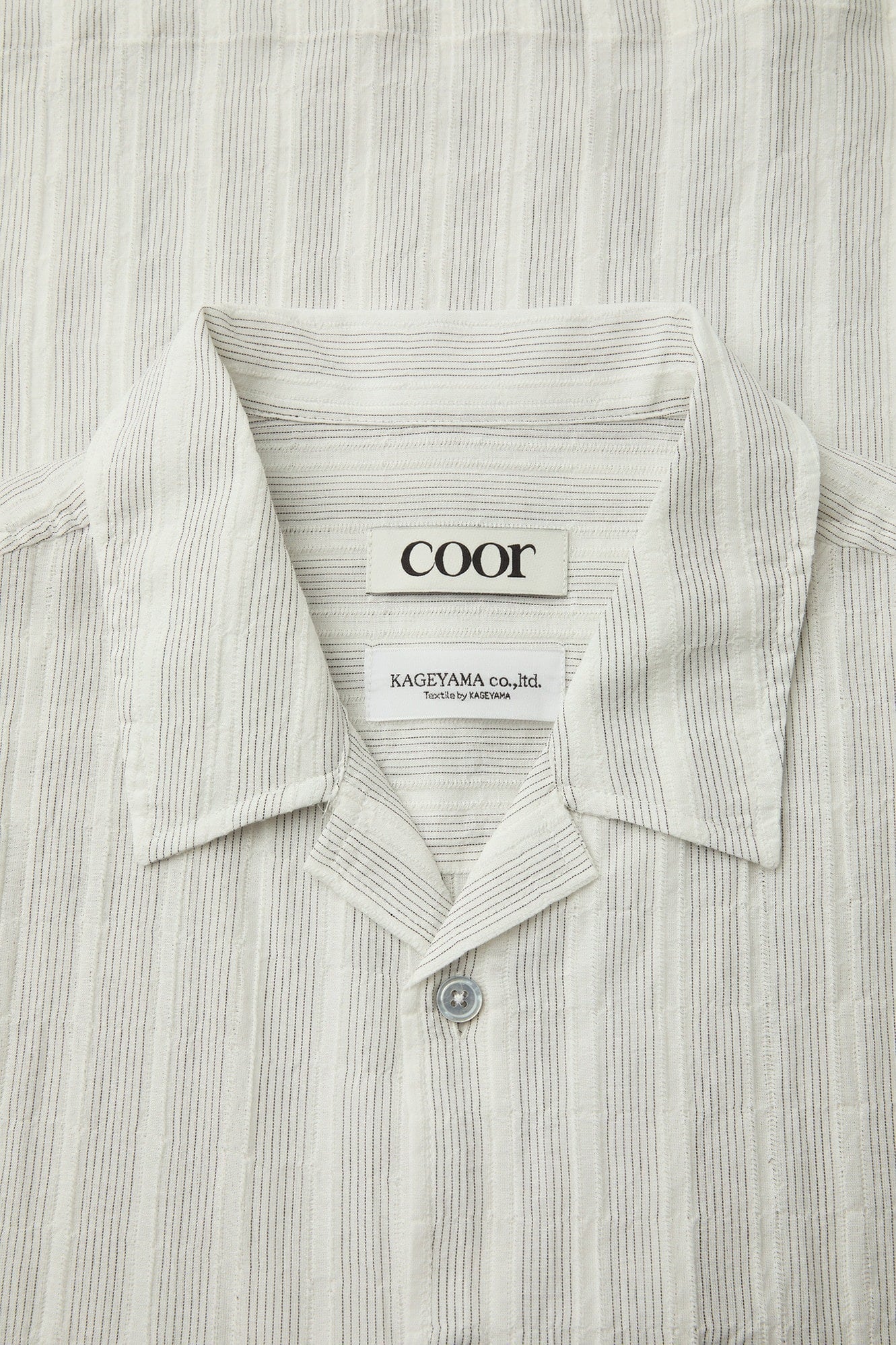 [COOR] Sheer Pin Open Collar Half Shirt (White)