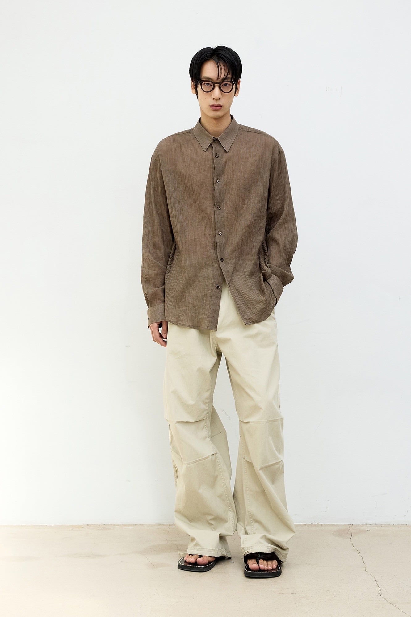 [COOR] Stripe See-Through Cotton Shirt (Brown)