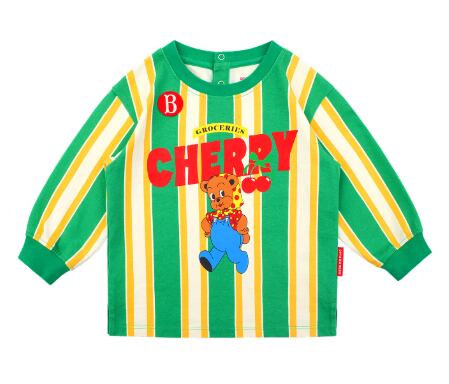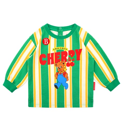 [BEBE DE PINO] Cherry bear baby stripe long sleeve tee