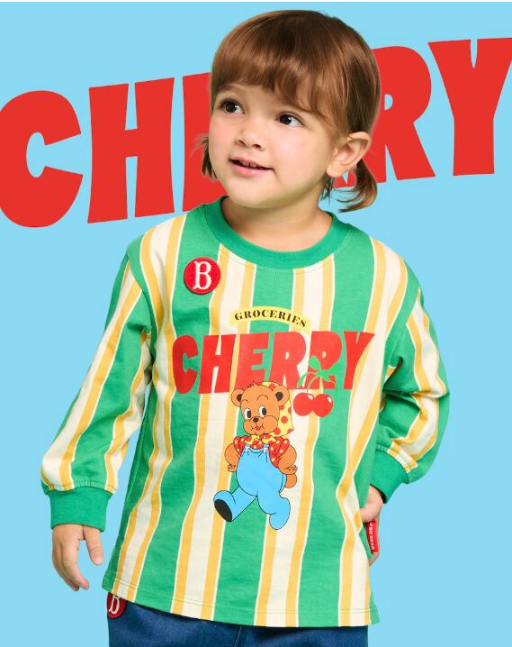 [BEBE DE PINO] Cherry bear baby stripe long sleeve tee 正規品 韓国ブランド 韓国ファッション 韓国代行 韓国通販 ベベドピノ bebedepino 日本 店舗 韓国 子供服
