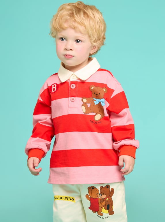 [BEBE DE PINO] Rosie bear baby stripe rugby tee