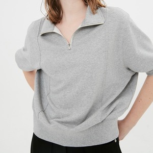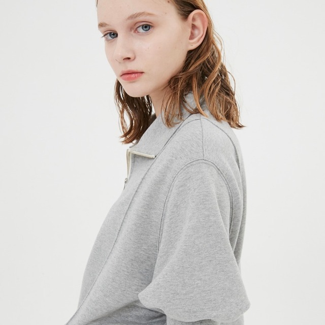 Half Sleeve Zip Up Sweatshirt / Melange Grey