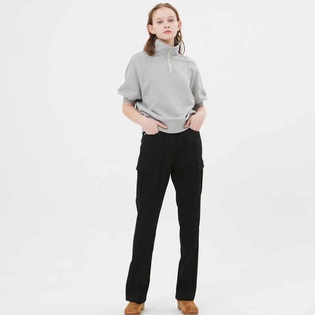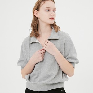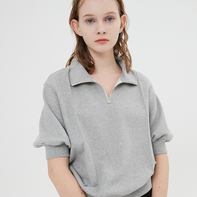 [MOONSUN] Half Sleeve Zip Up Sweatshirt / Melange Grey 正規品 韓国ブランド 韓国ファッション 韓国代行 ブランド トップス