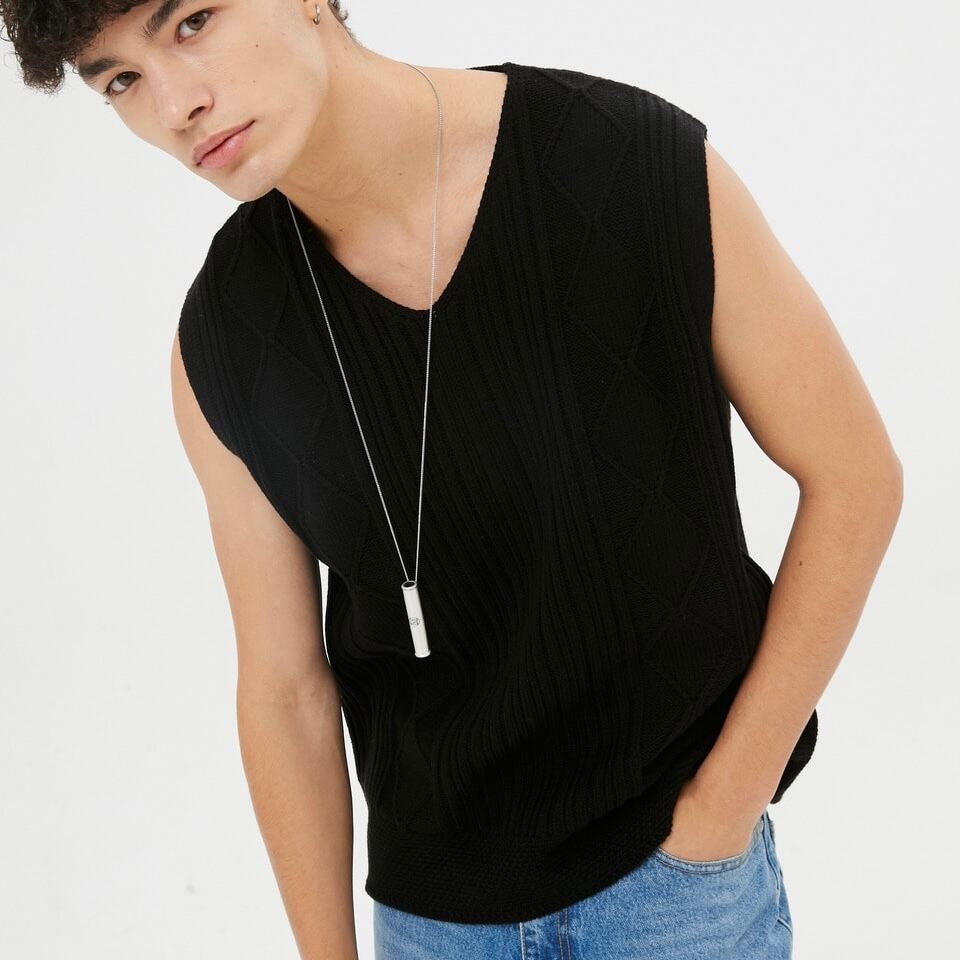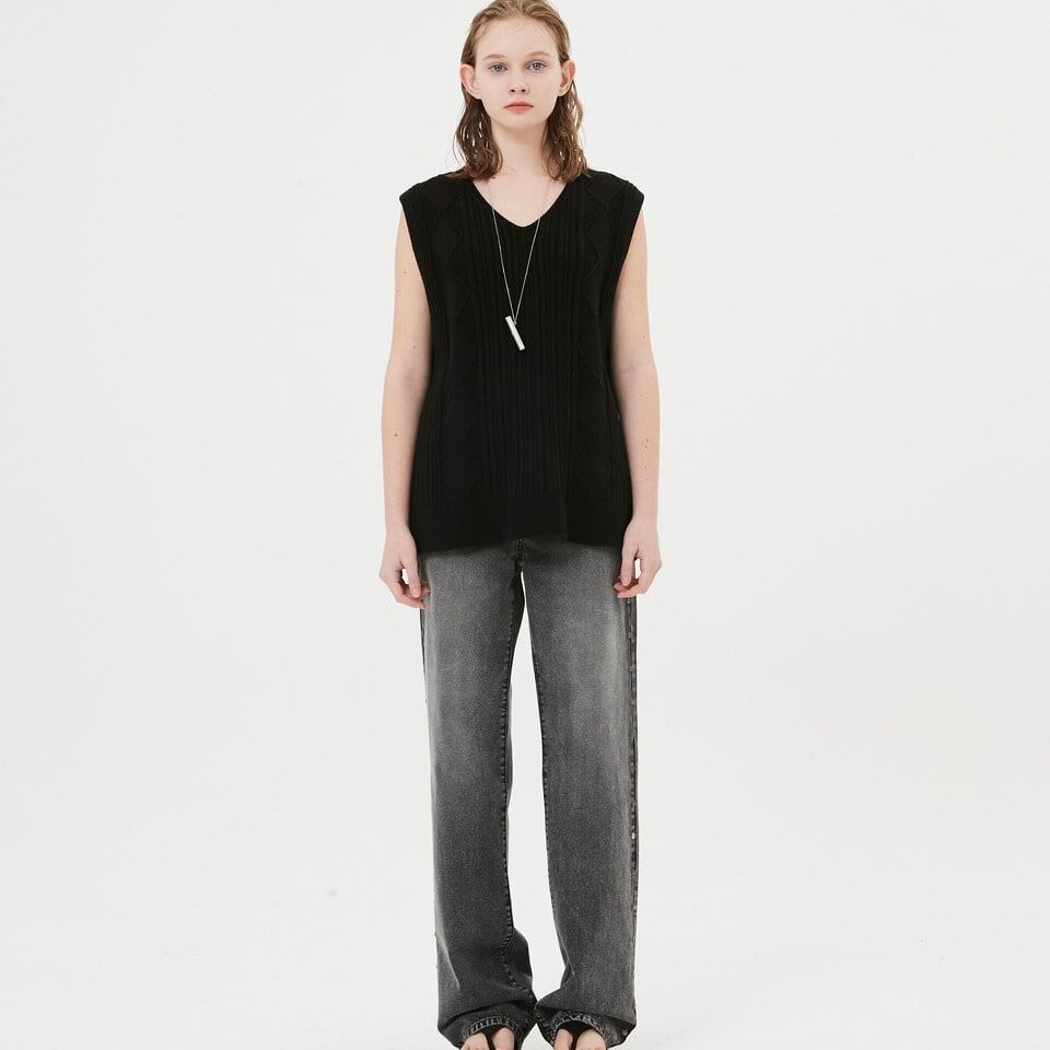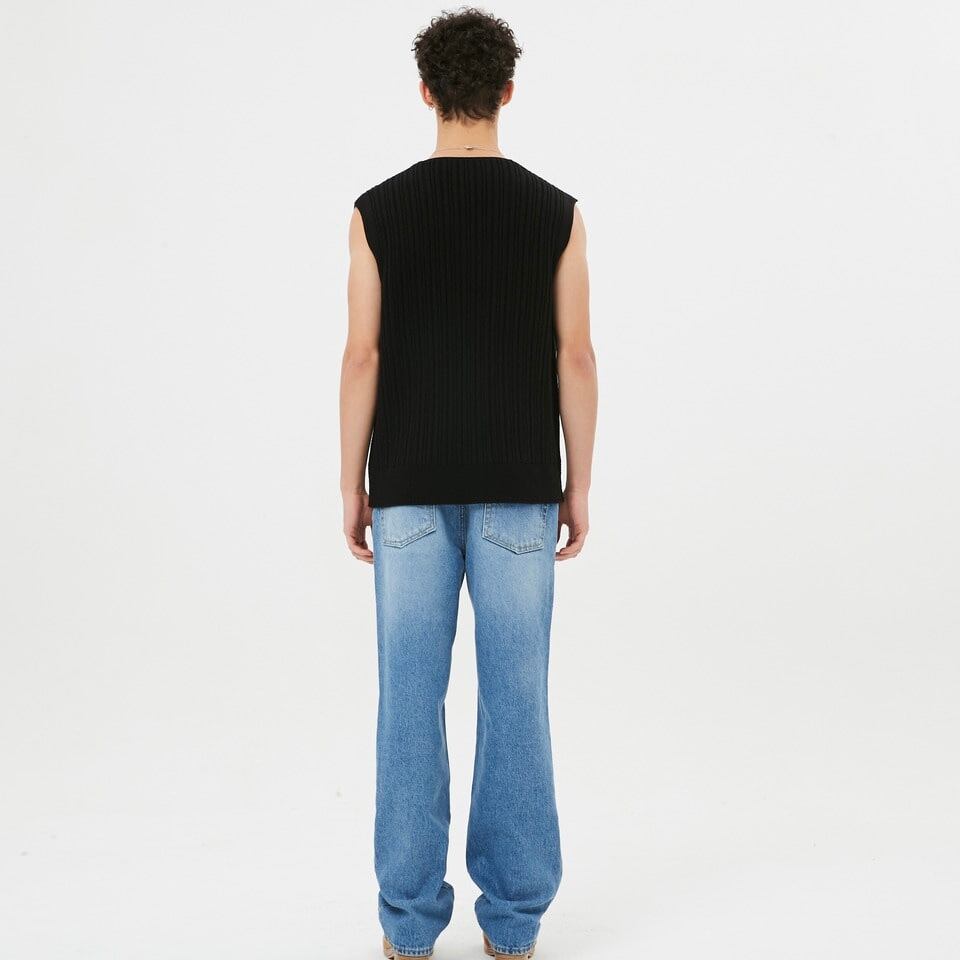 [MOONSUN] UNISEX, Solar Dia Ribbed Knit Vest / Black 正規品 韓国ブランド 韓国ファッション 韓国代行 ブランド ニット ベスト