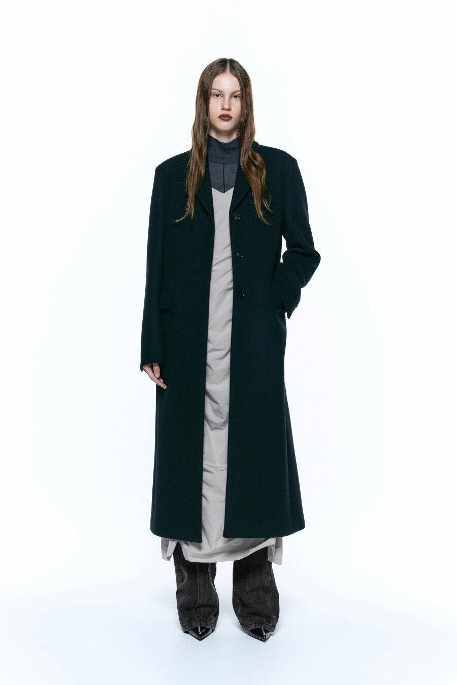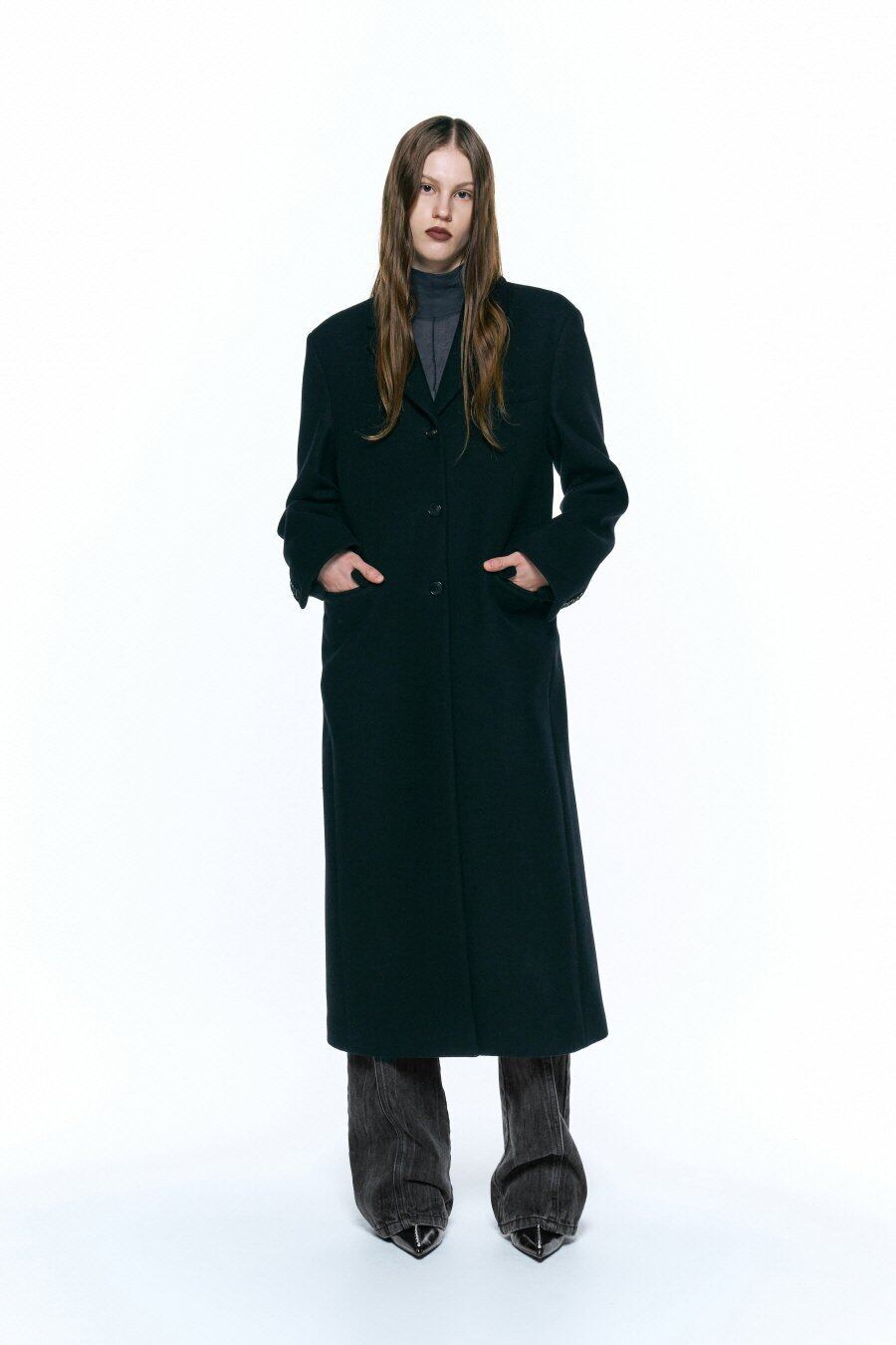 [INSILENCE WOMEN] Cashmere Single Maxi Coat BLACK