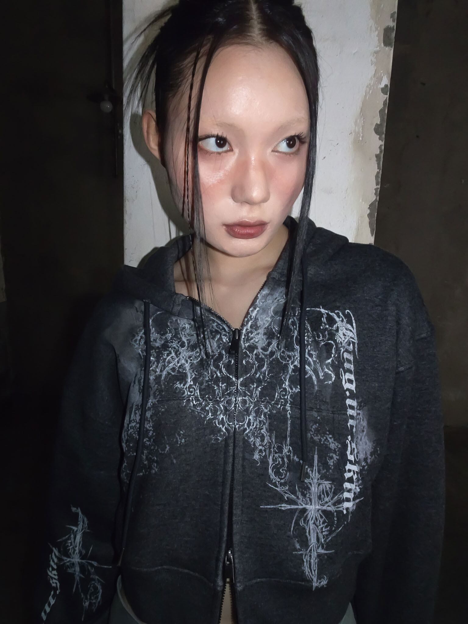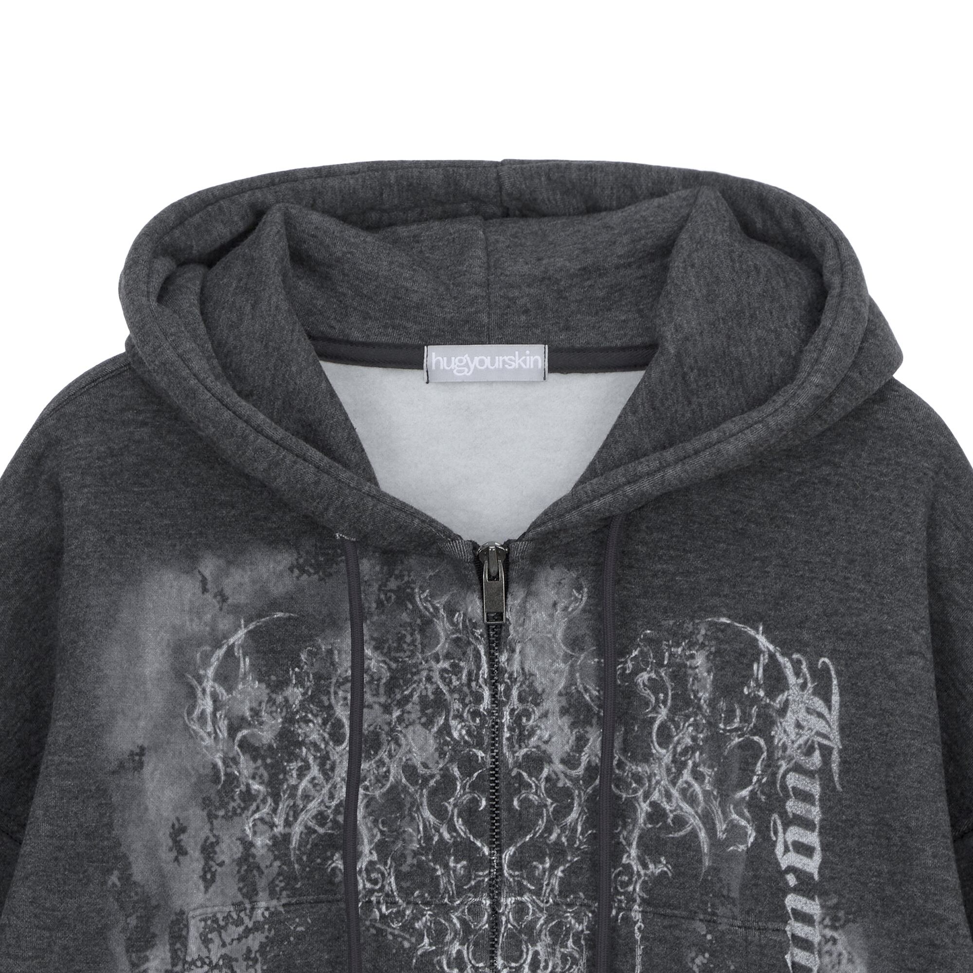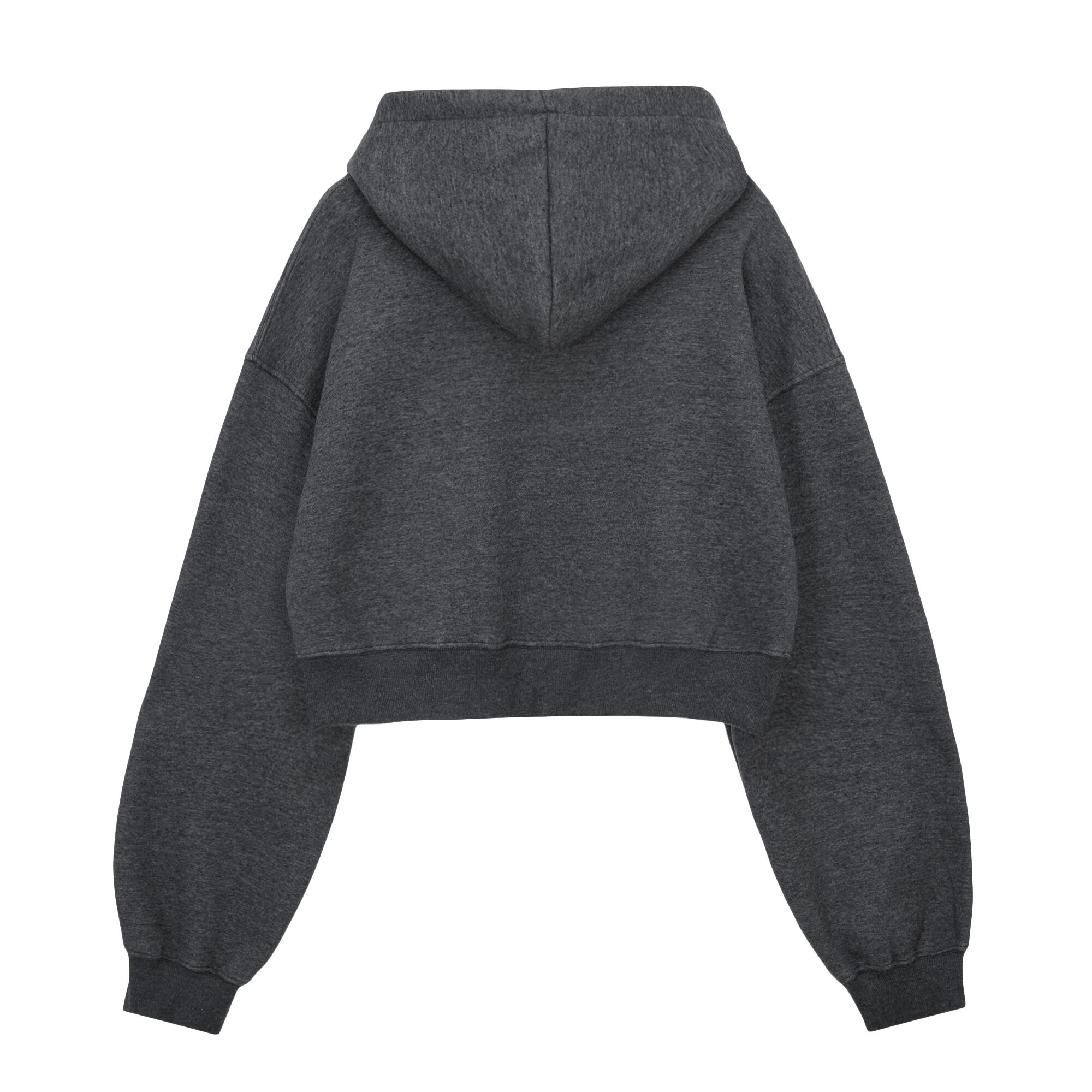 [hug your skin] Fluffy oversized hoodie zip-up (Melange black)