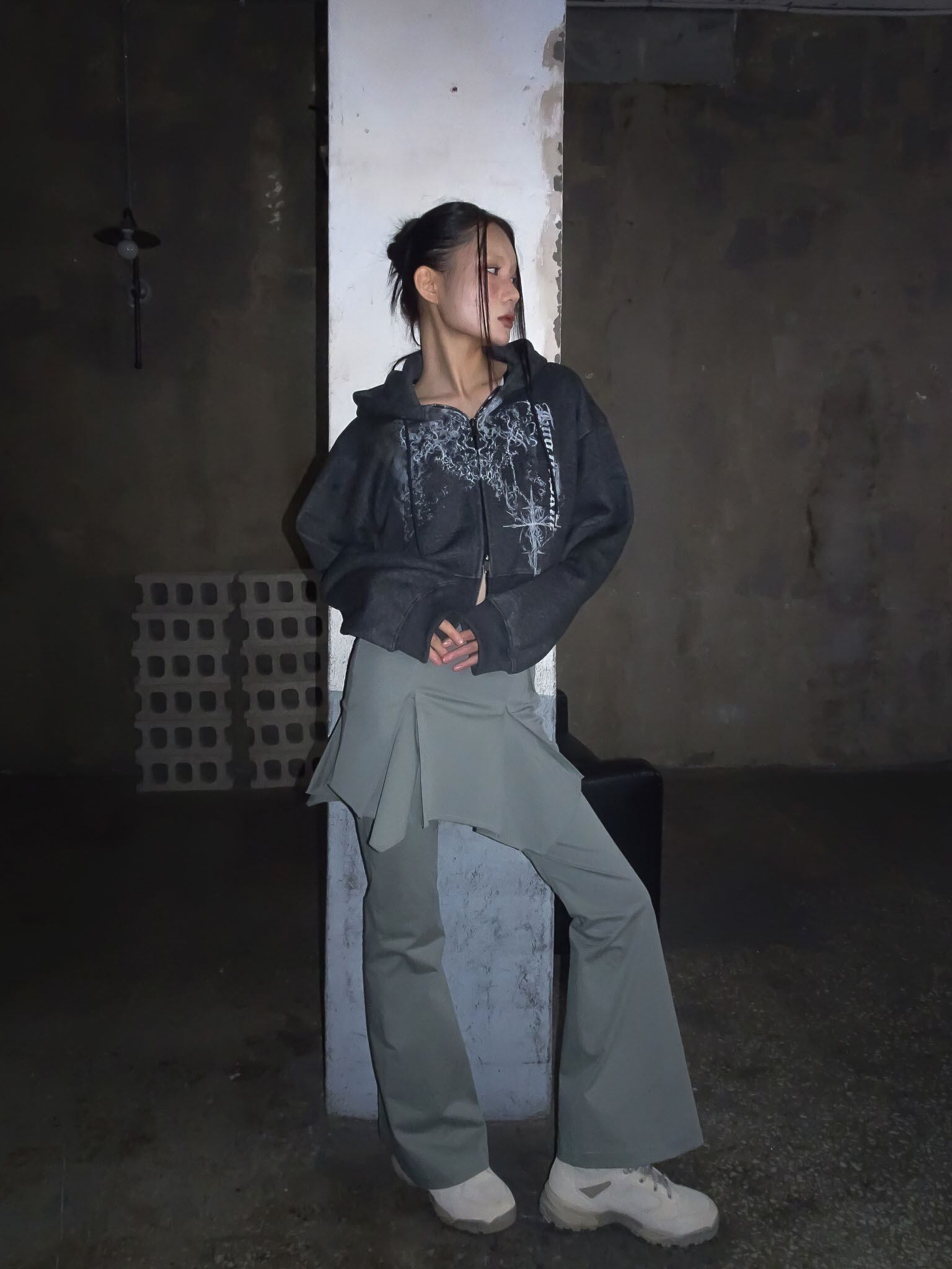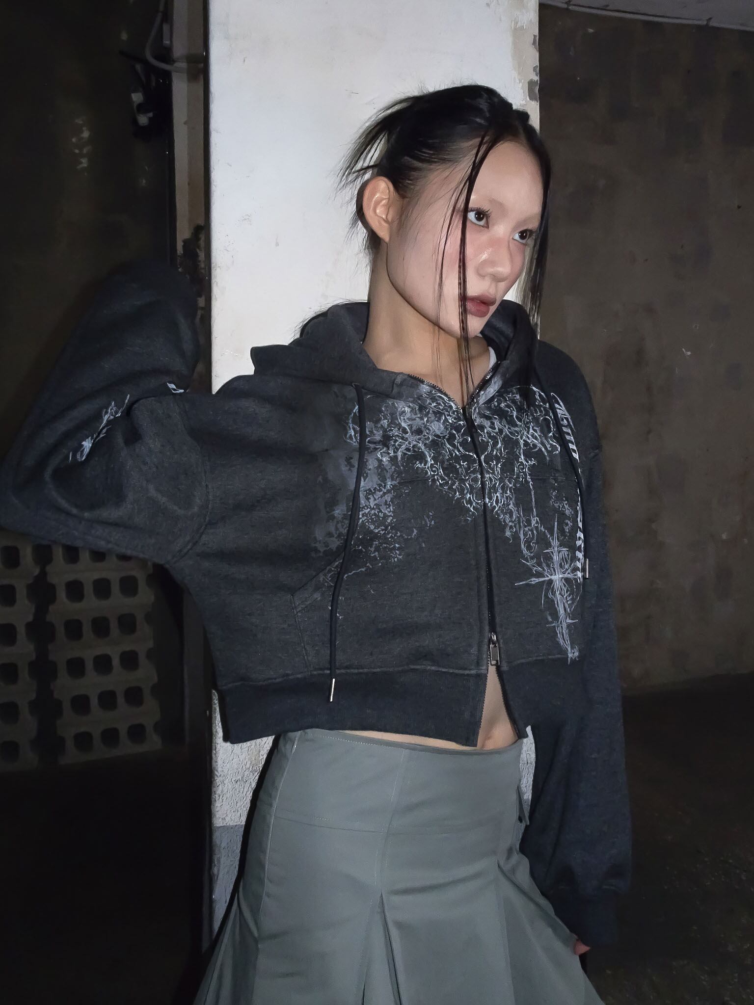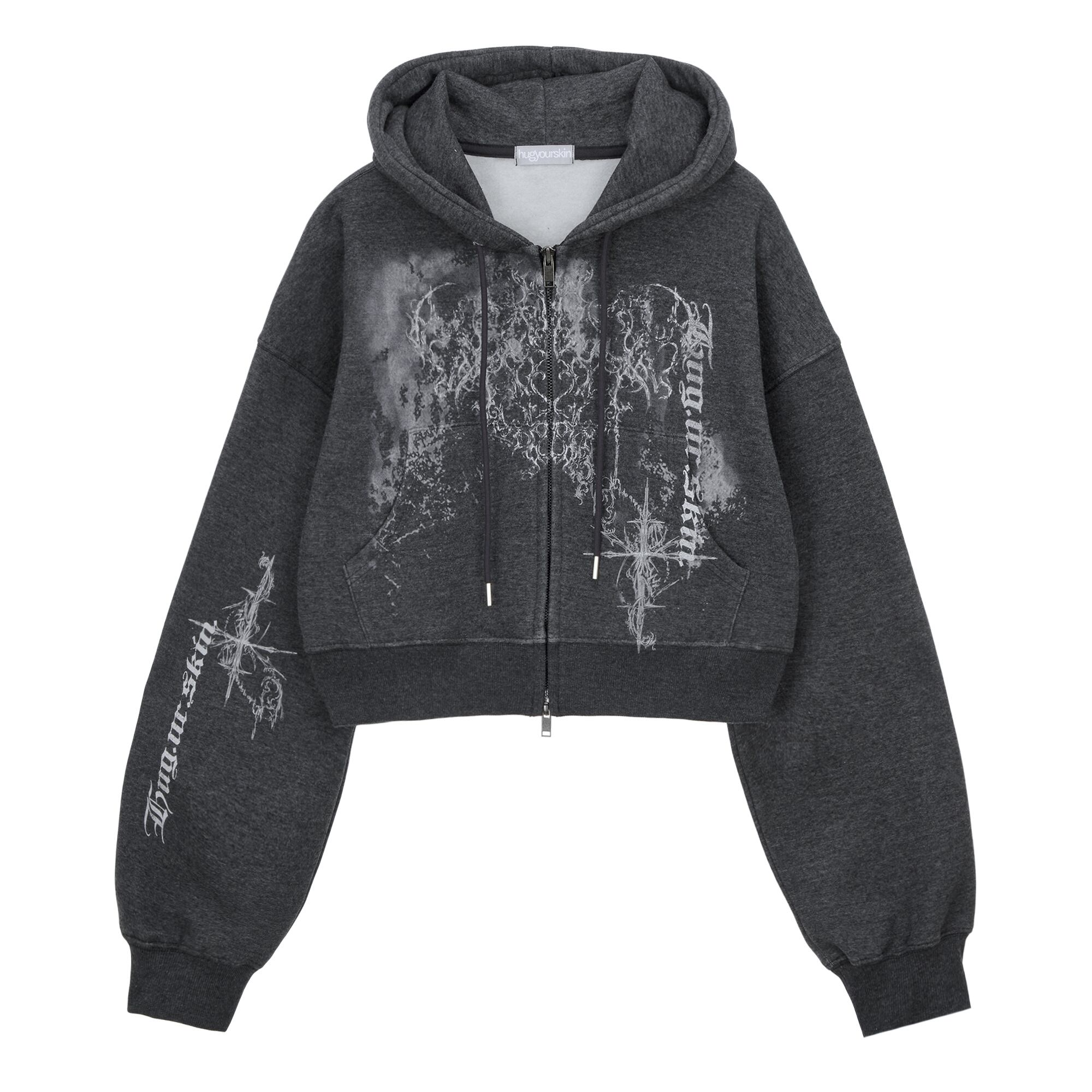 [hug your skin] Fluffy oversized hoodie zip-up (Melange black)