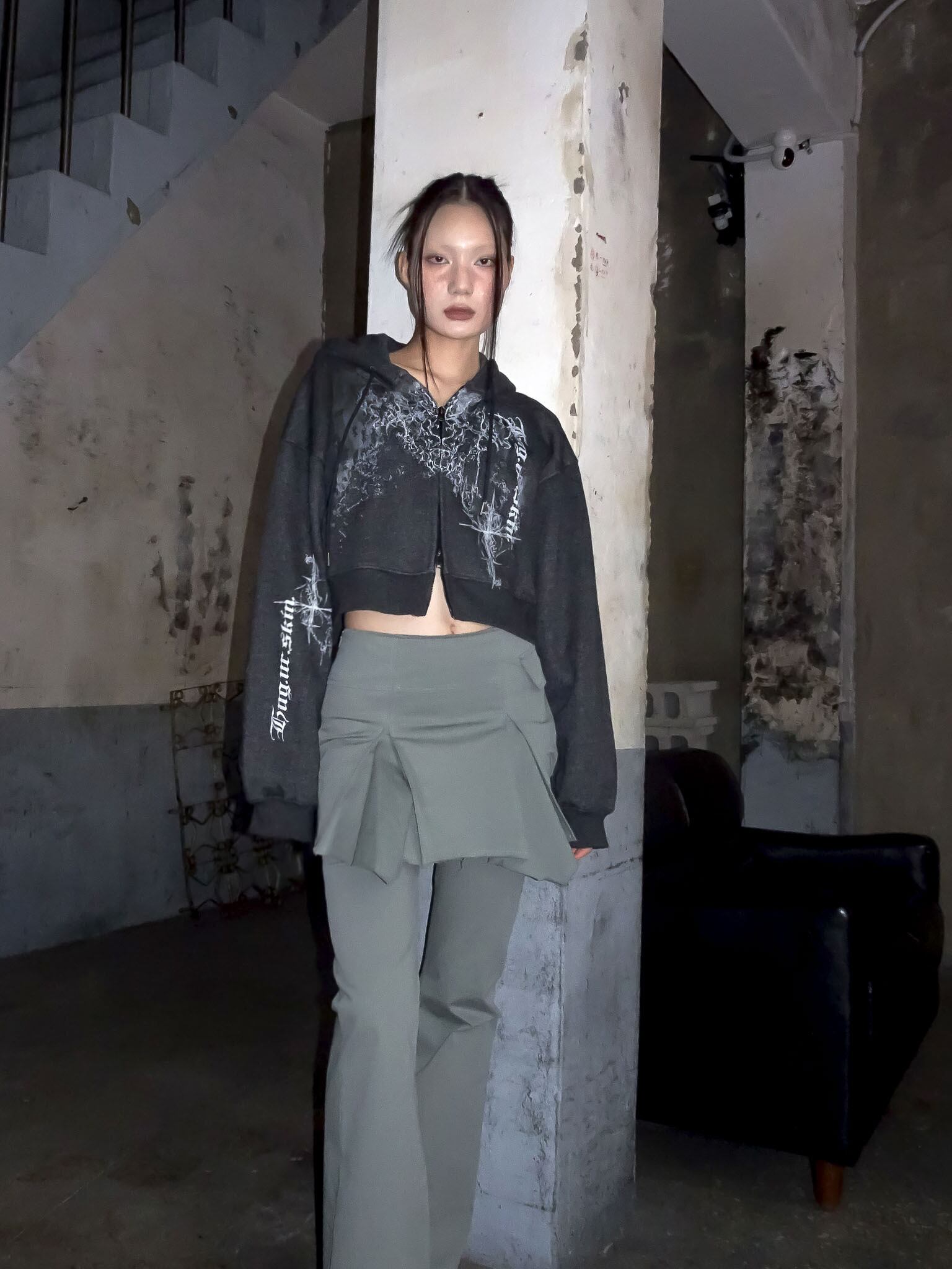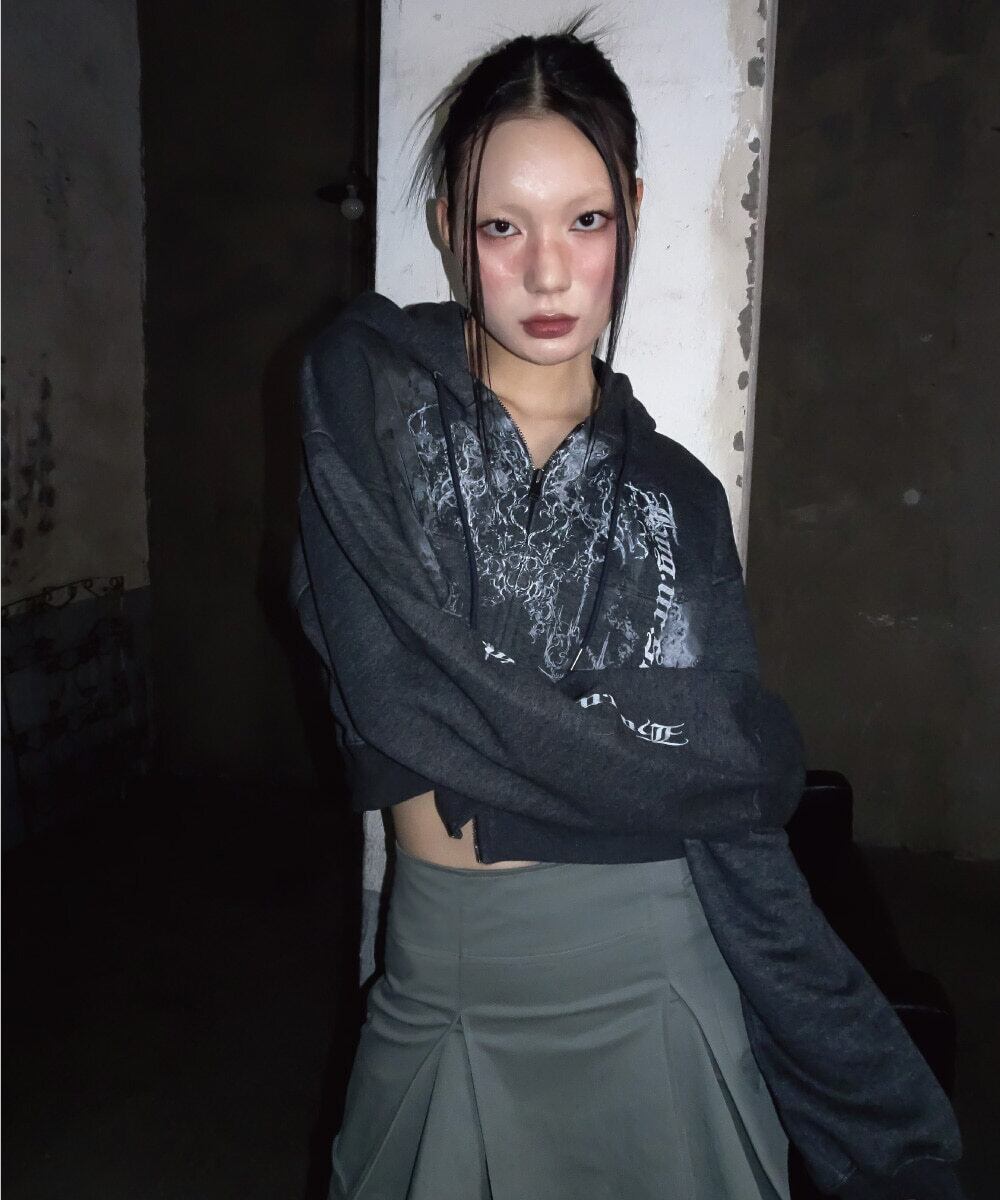 [hug your skin] Fluffy oversized hoodie zip-up (Melange black) 正規品 韓国ブランド 韓国ファッション 韓国代行 日本 hugyourskin hug ハグユアスキン