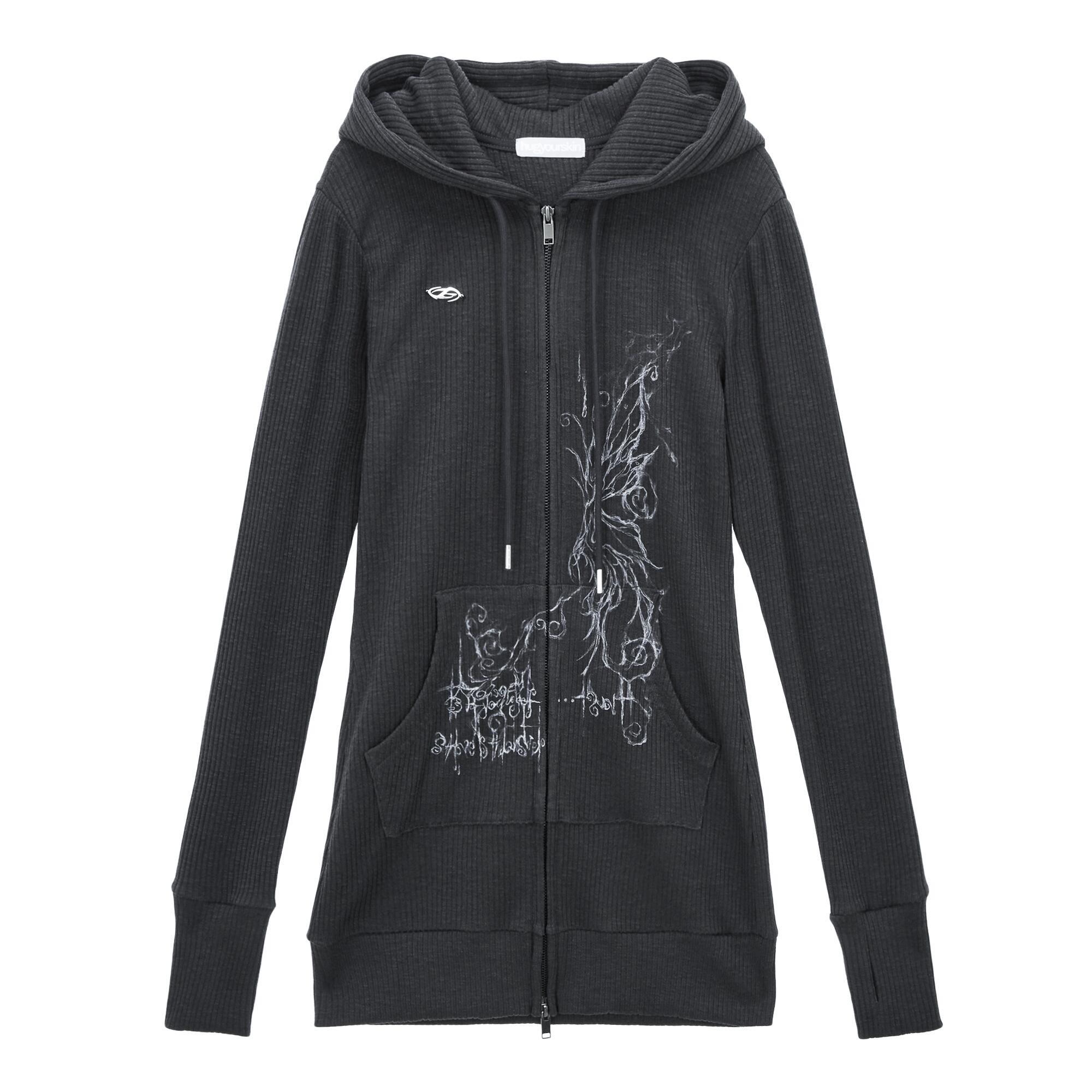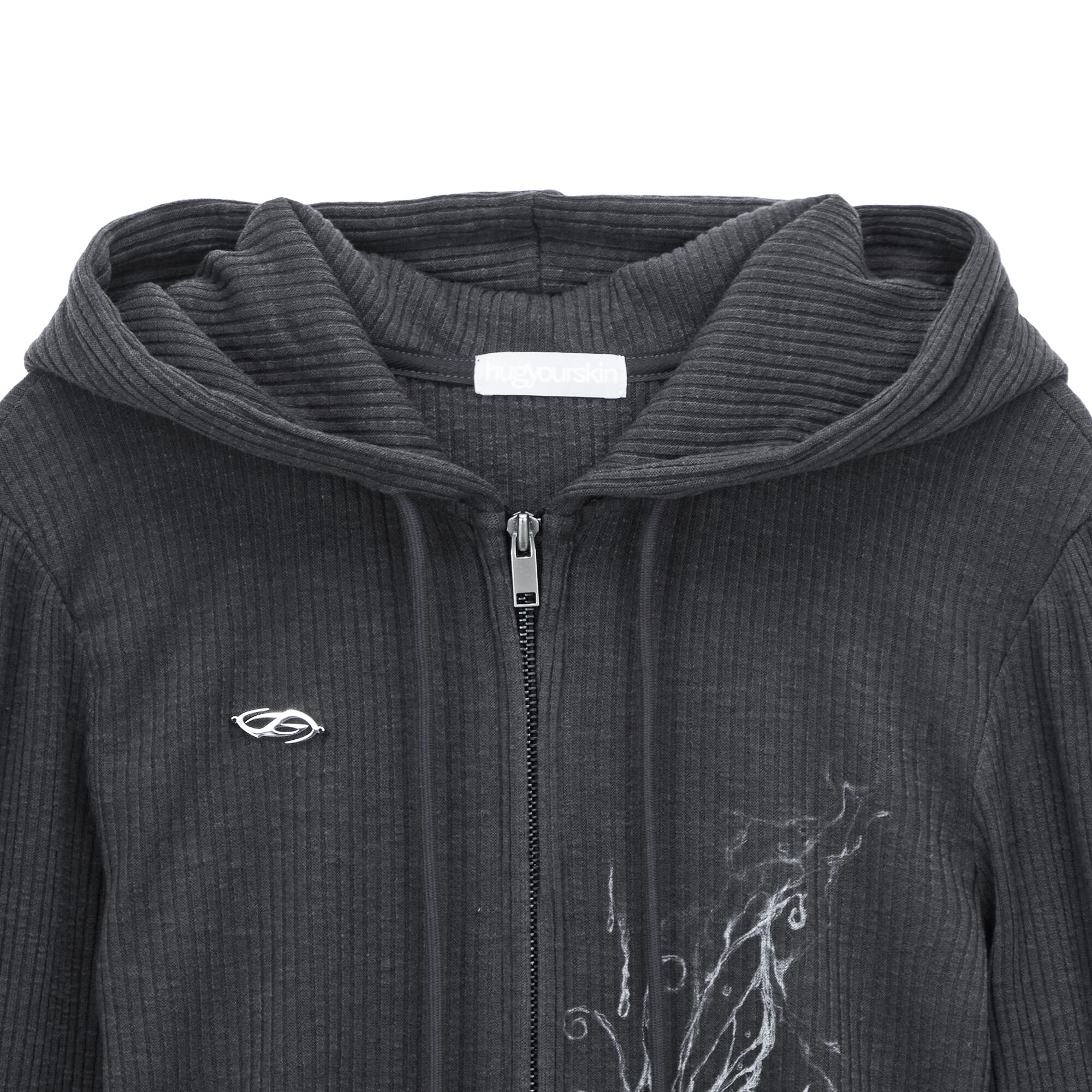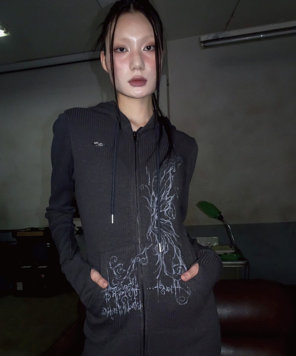 [hug your skin] Knitted long hoodie zip-up (Charcoal)