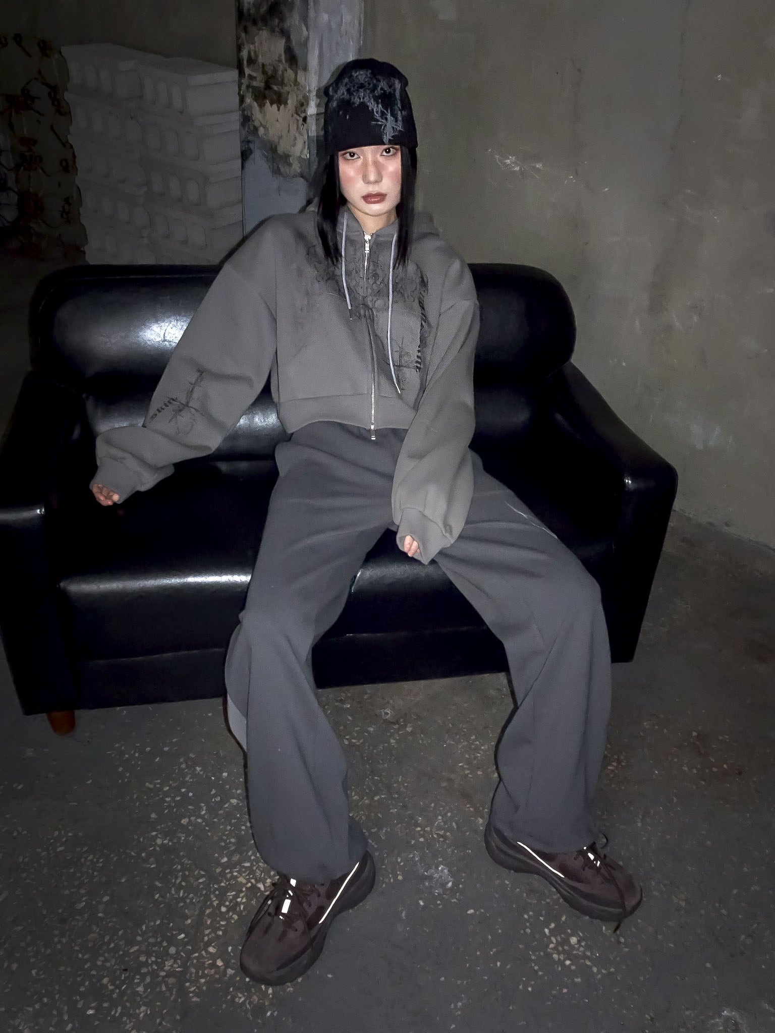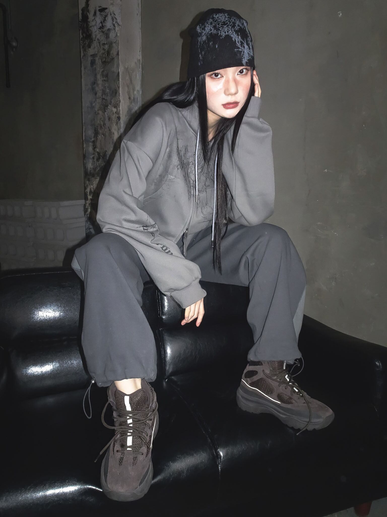 [hug your skin] Printed knit short beanie (Black) 正規品 韓国ブランド 韓国ファッション 韓国代行 日本 hugyourskin hug ハグユアスキン