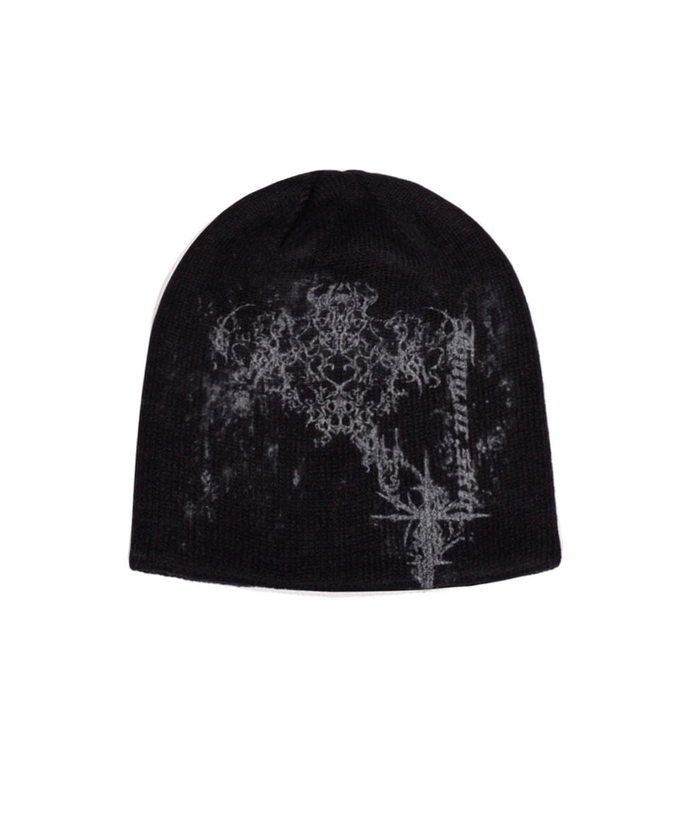 [hug your skin] Printed knit short beanie (Black)