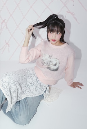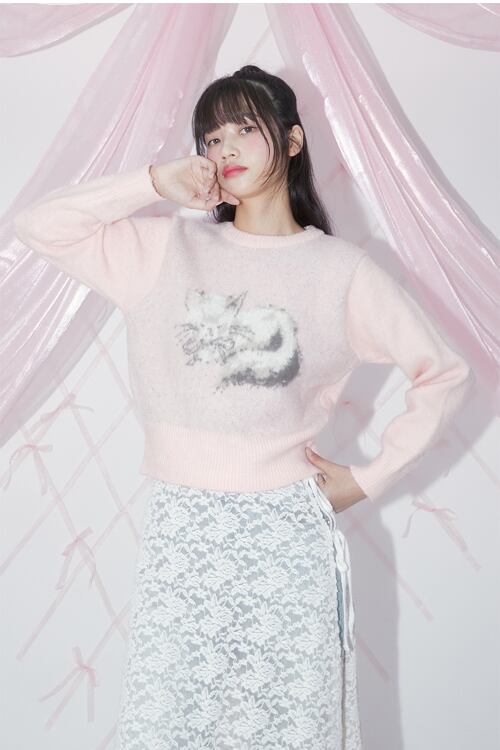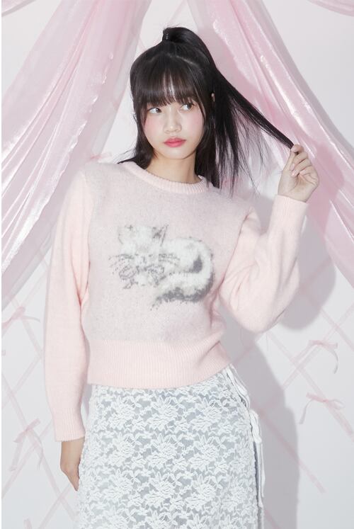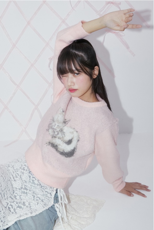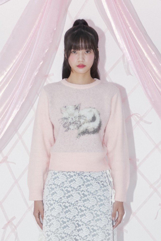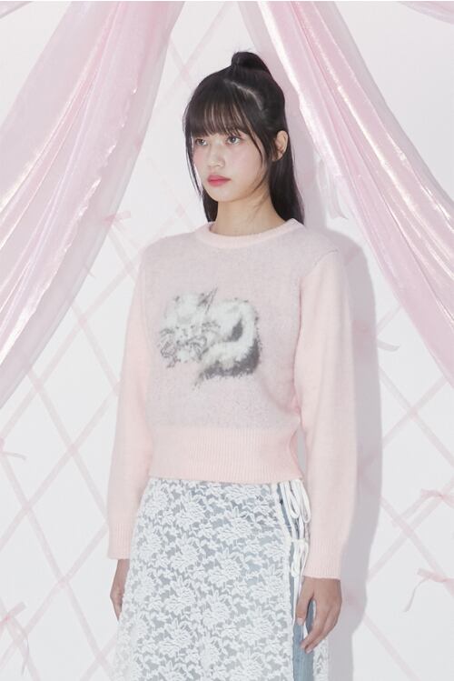 [MARGARIN FINGERS] BRUSH KITTY PULLOVER (LIGHT PINK)