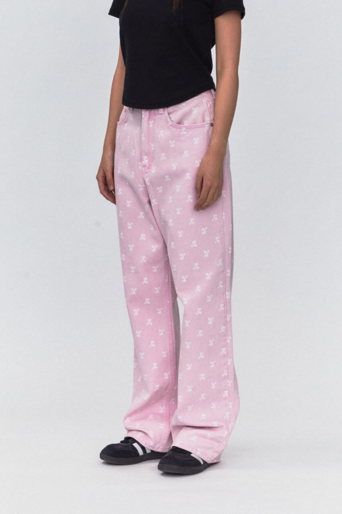[rest & recreation] RR LOGO PRINTED JEANS - PINK 正規韓国ブランド 韓国ファッション 韓国代行 rest recreation レストアンドレクリエーション restrecreation
