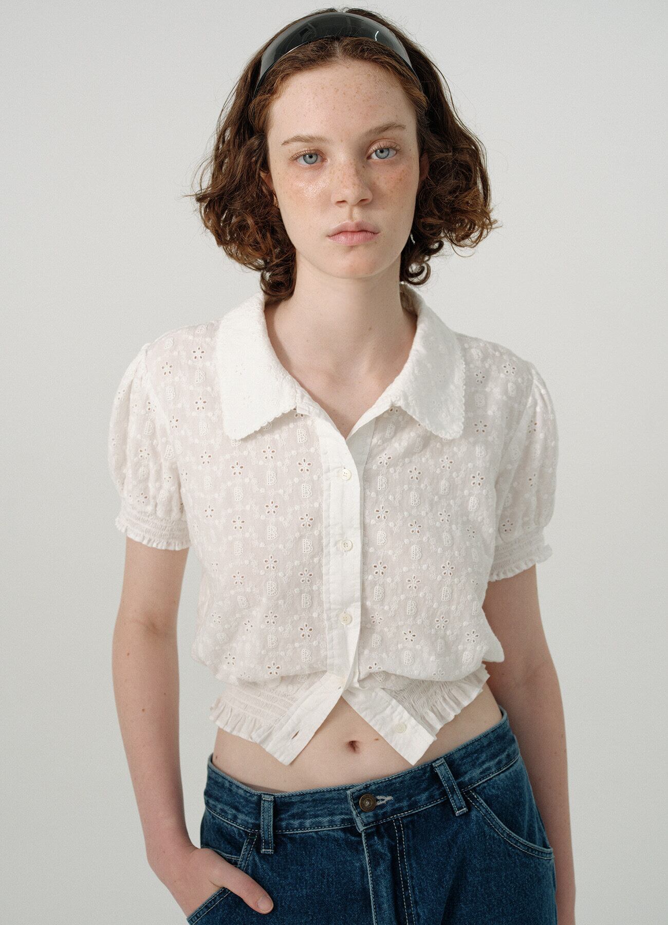 [The Barnnet] Flower Eyelet Puff-Sleeve Blouse