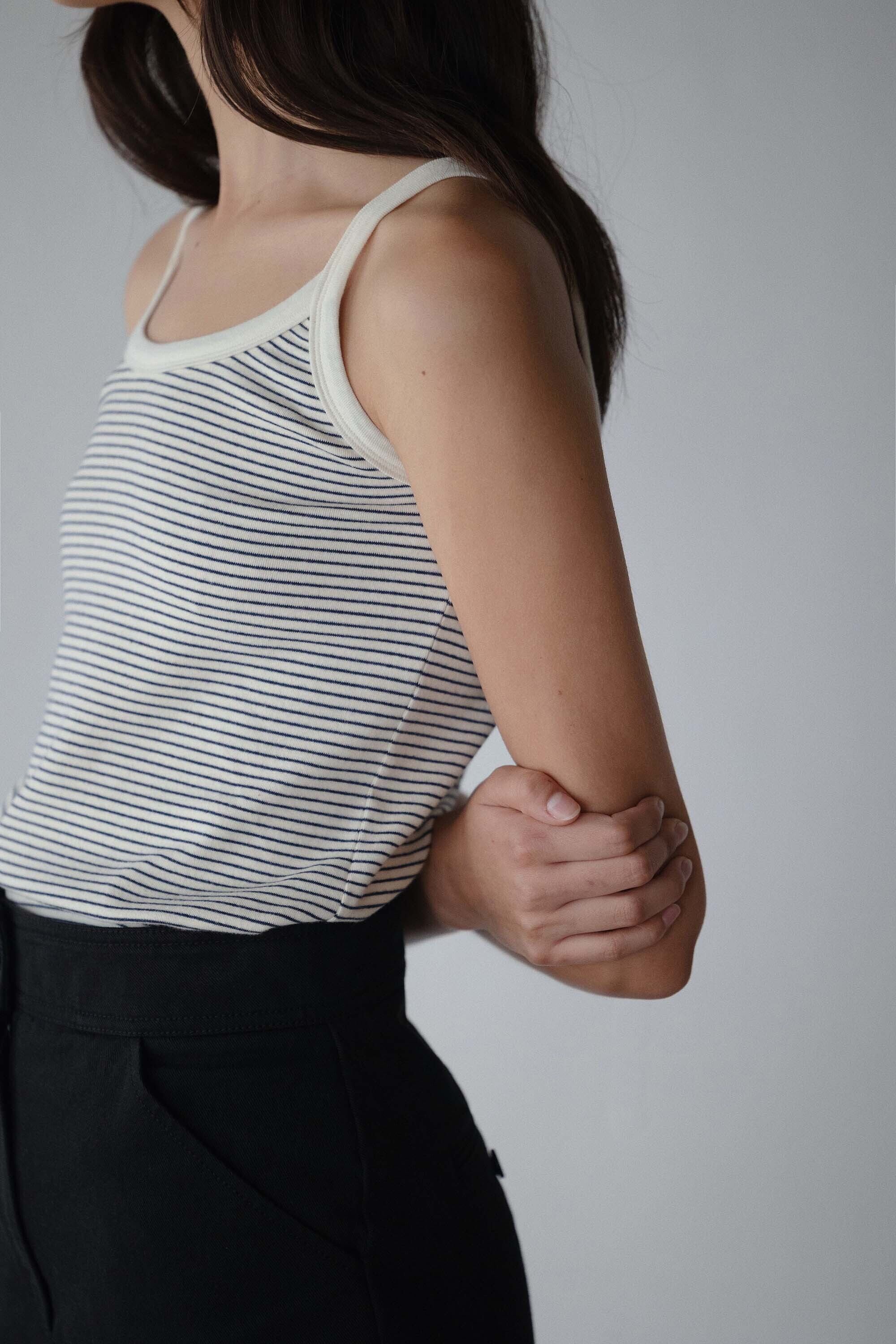 [NOTHING WRITTEN] Stripe sleeveless top (Ivory)